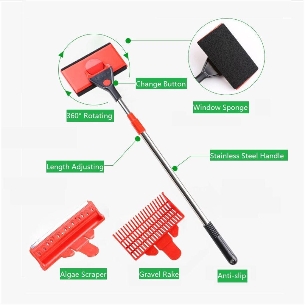 Aquarium fish tank cleaning set includes: gravel rake, algae scraper, window sponge