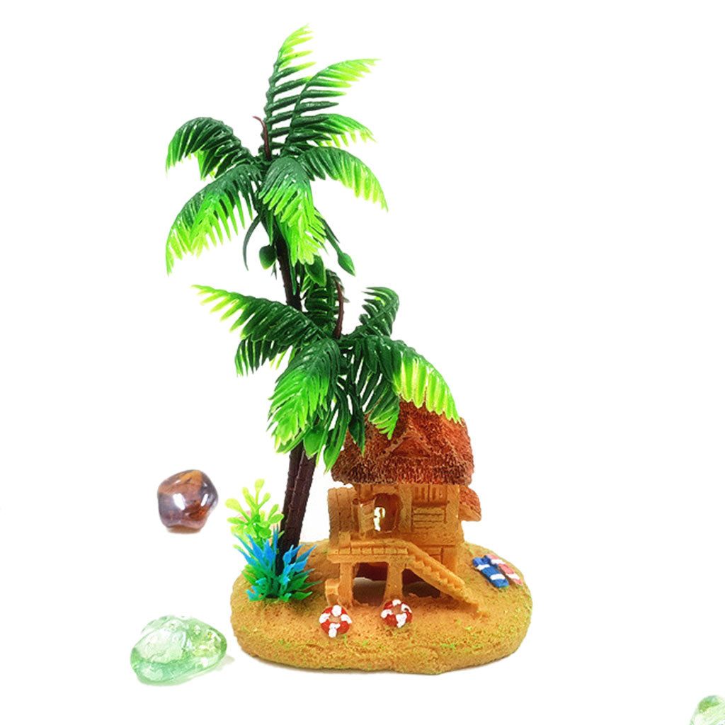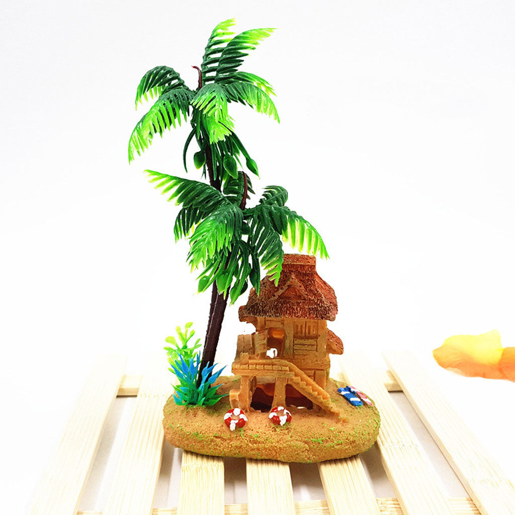 Aquarium Fish Tank Resin Ornament Mongolian Yurts Coconut Tree Artifical Water Decor