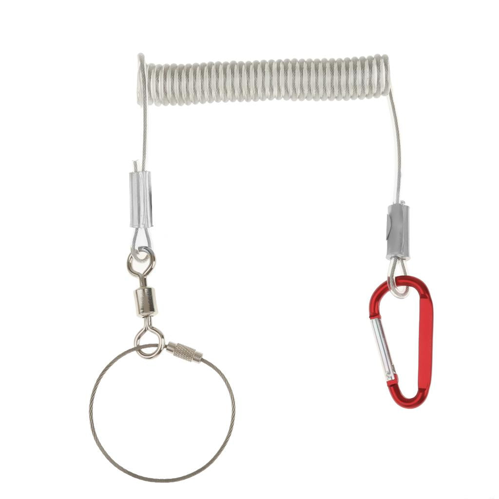 1.4M Stretch Steel Wire Spring Coil Lanyard Rope with Swivel Ring Carabiner