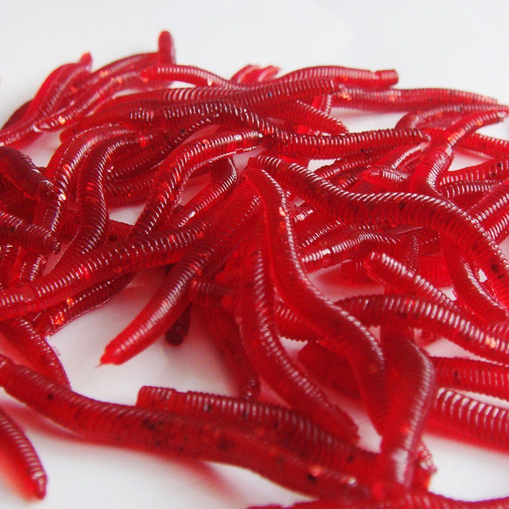 100x Silicone Earthworm Fish Lure Worm Fishing Crankbaits Hooks Baits Tackle