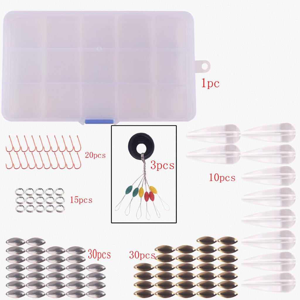 109pcs Fishing Accessories Kit Spoon Lures Sbirolino Floats Hooks Split Rings Float Stoppers