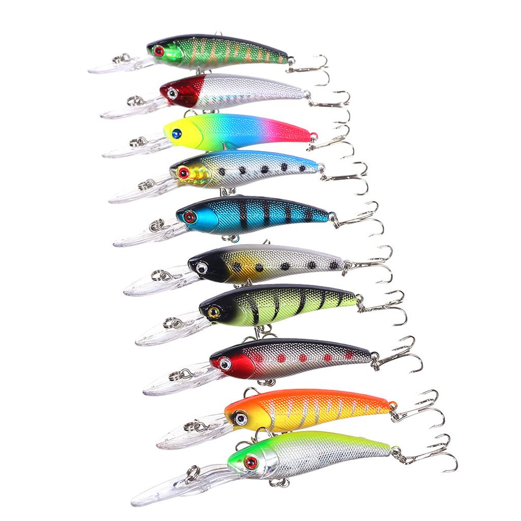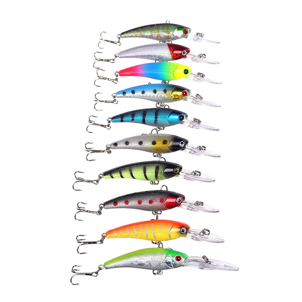 10pcs Fishing Lure Baits Hard Minnow Swimbait Treble Hooks Tackle 9cm