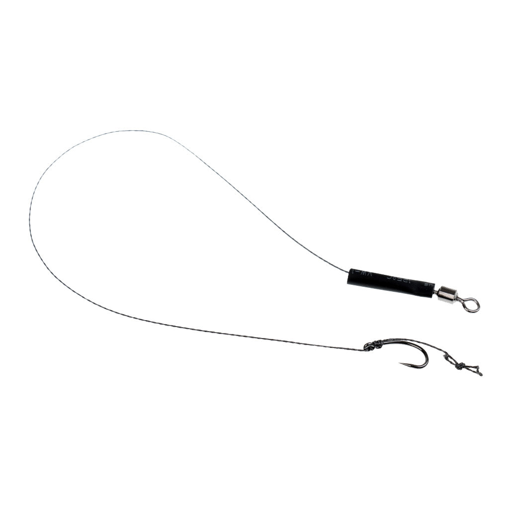 Shrink tube is over the hook for you to shrink to your desired angle to produce a anti-eject rig.