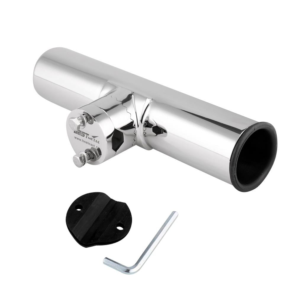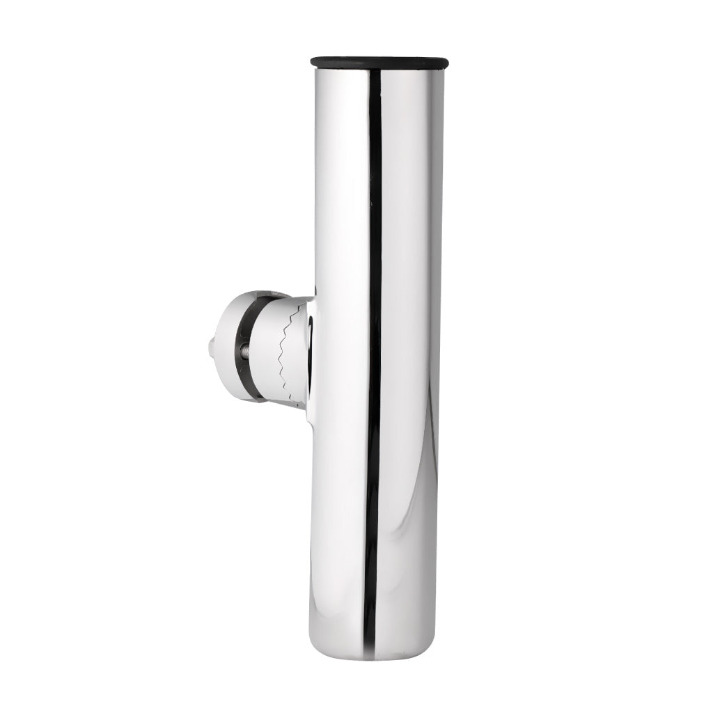The rod holder mounts on vertical or horizontal rails from 3/4" to 1" in diameter