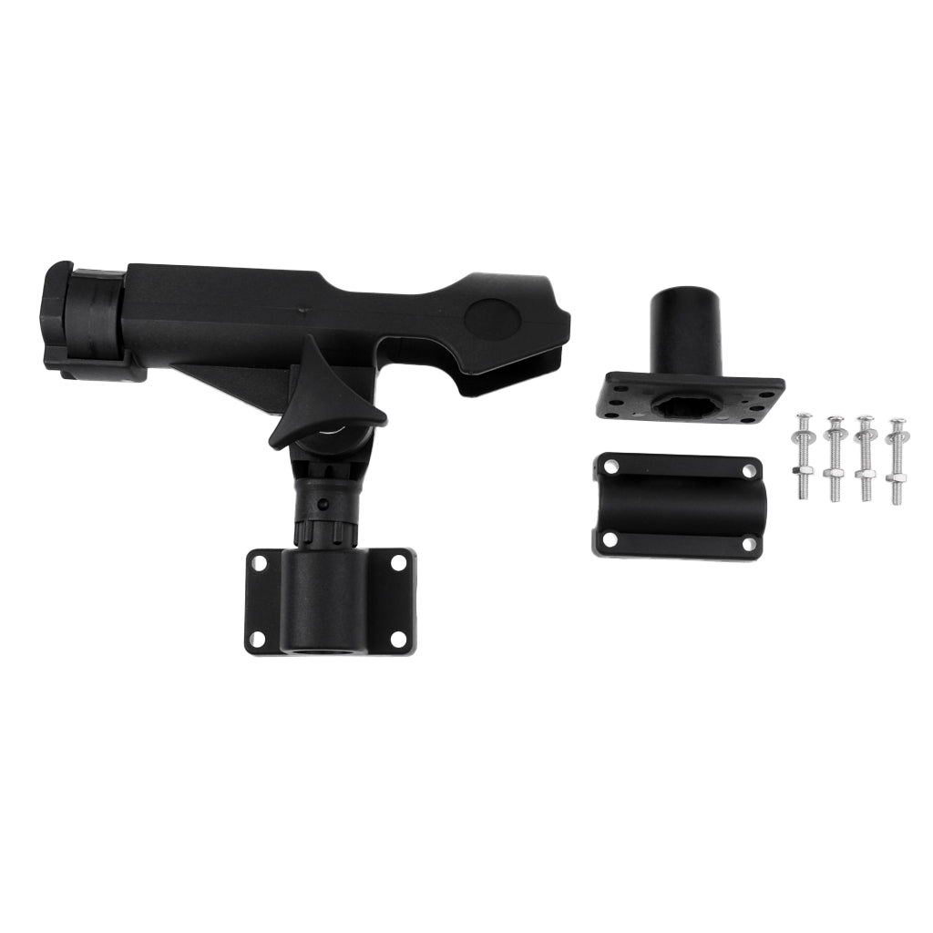 3 Way spinning fishing rod holder that can be mounted securely to a rail, side or flush of a boat/yacht/kayak