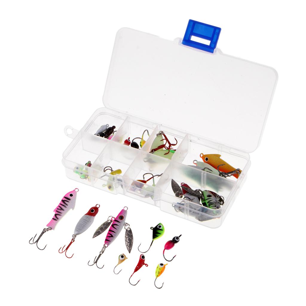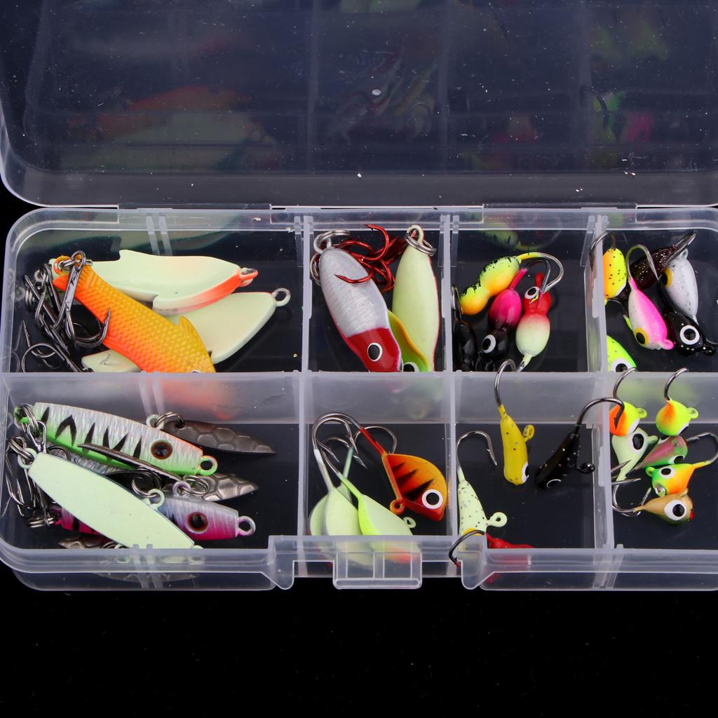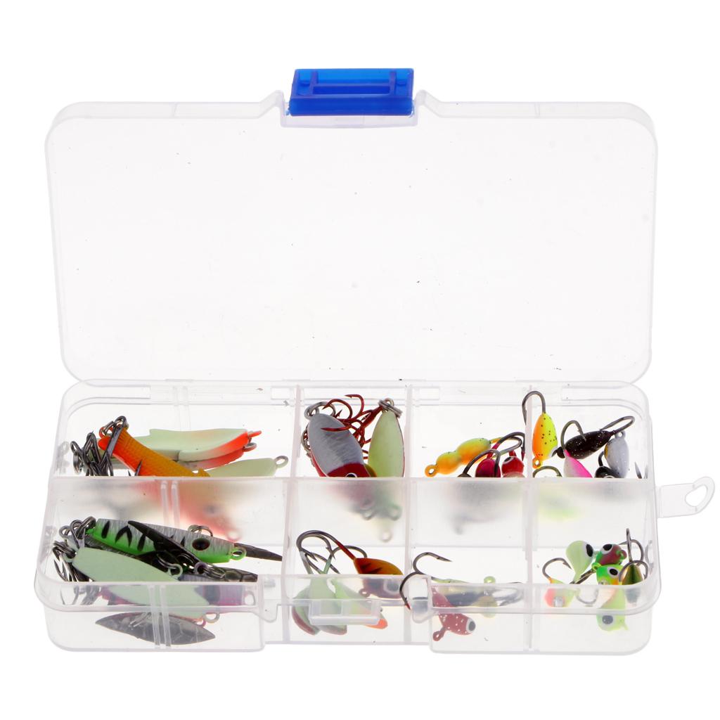 36pcs Assorted Ice Fishing Jigs Kit Jigging Lures Lead Jig Hooks for Perch Panfish Bass Trout Walley