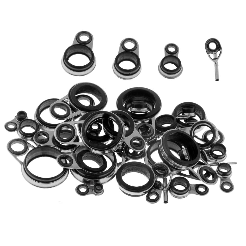 37Pcs Telescopic Fishing Rod Guides Top Ring Set Rod Repair Kit Mixed Sizes