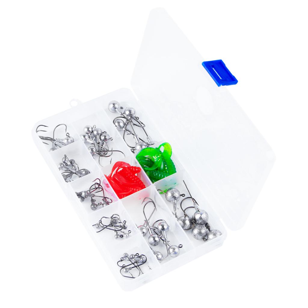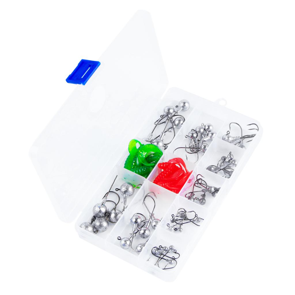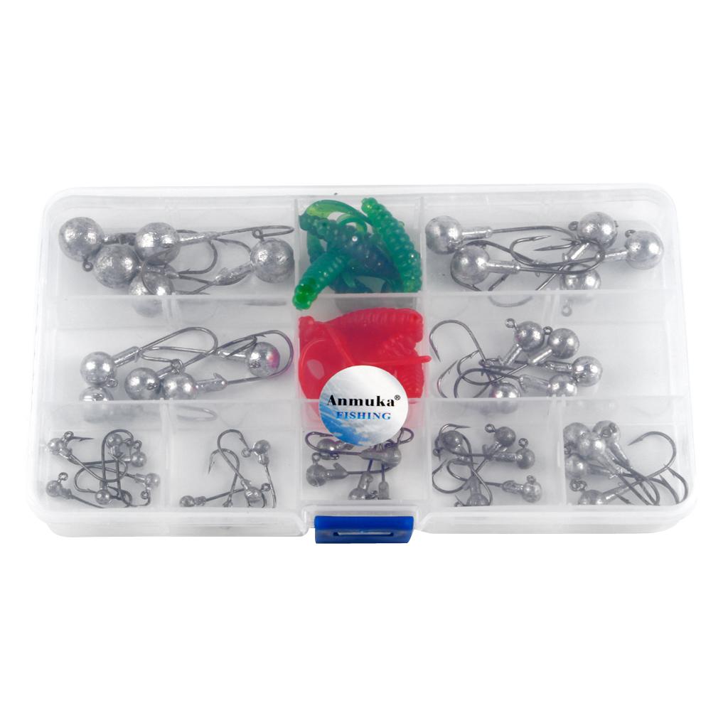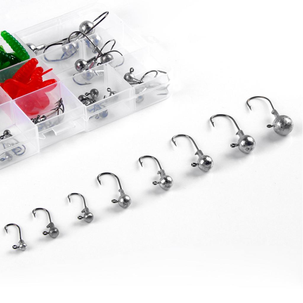 45Pcs fishing hooks and 10pcs soft worm lures set.
