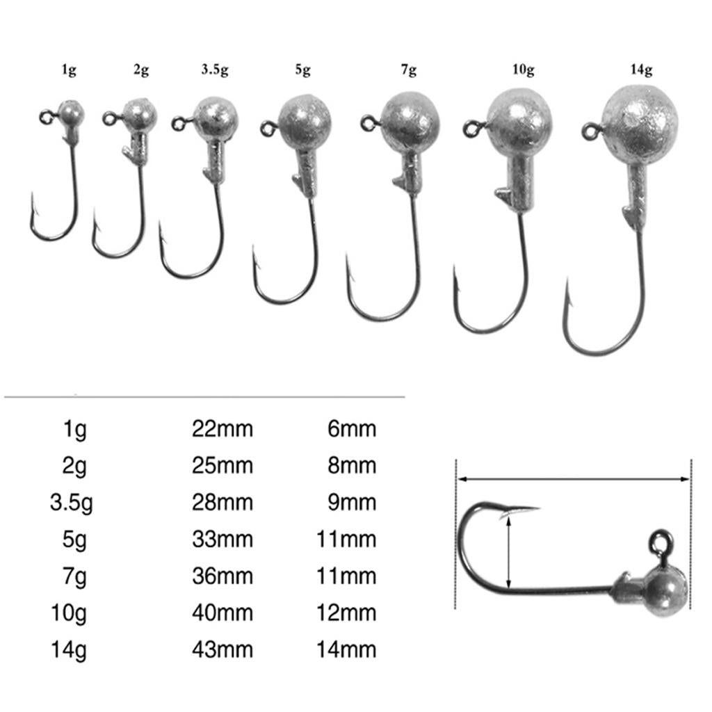 25 Pieces Lead Head Fishing Hook 3.5g 5g 7g 10g 14g (5pcs for each size)