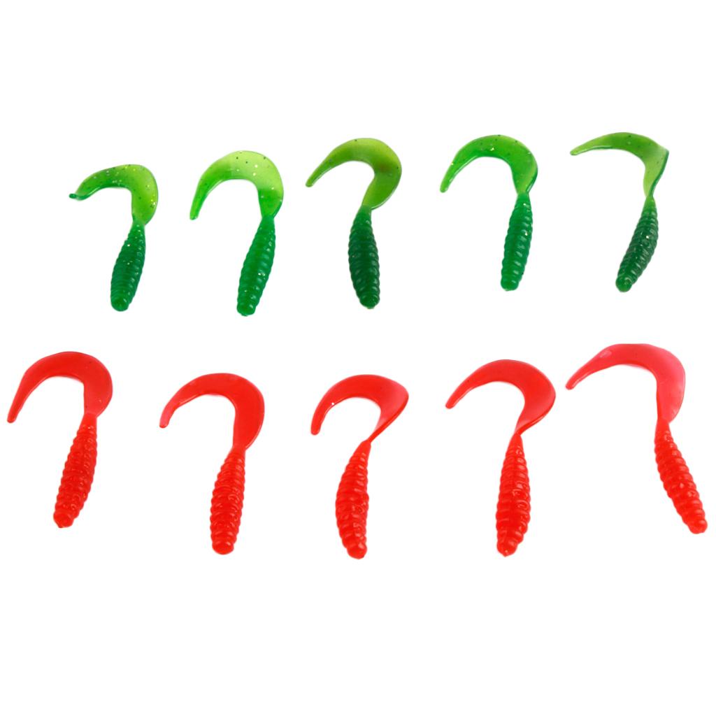 10 Pieces Soft Worm Shrimp Lures Red/Green (5pcs for each color)