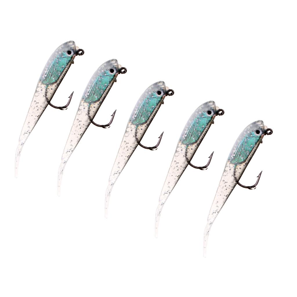5 Pieces Silica gel Vivid Minnow Fishing Lures Soft Baits 3D fish eye Bionic Artificial Baits with Fish Luring Agent 7.3cm