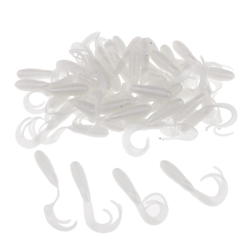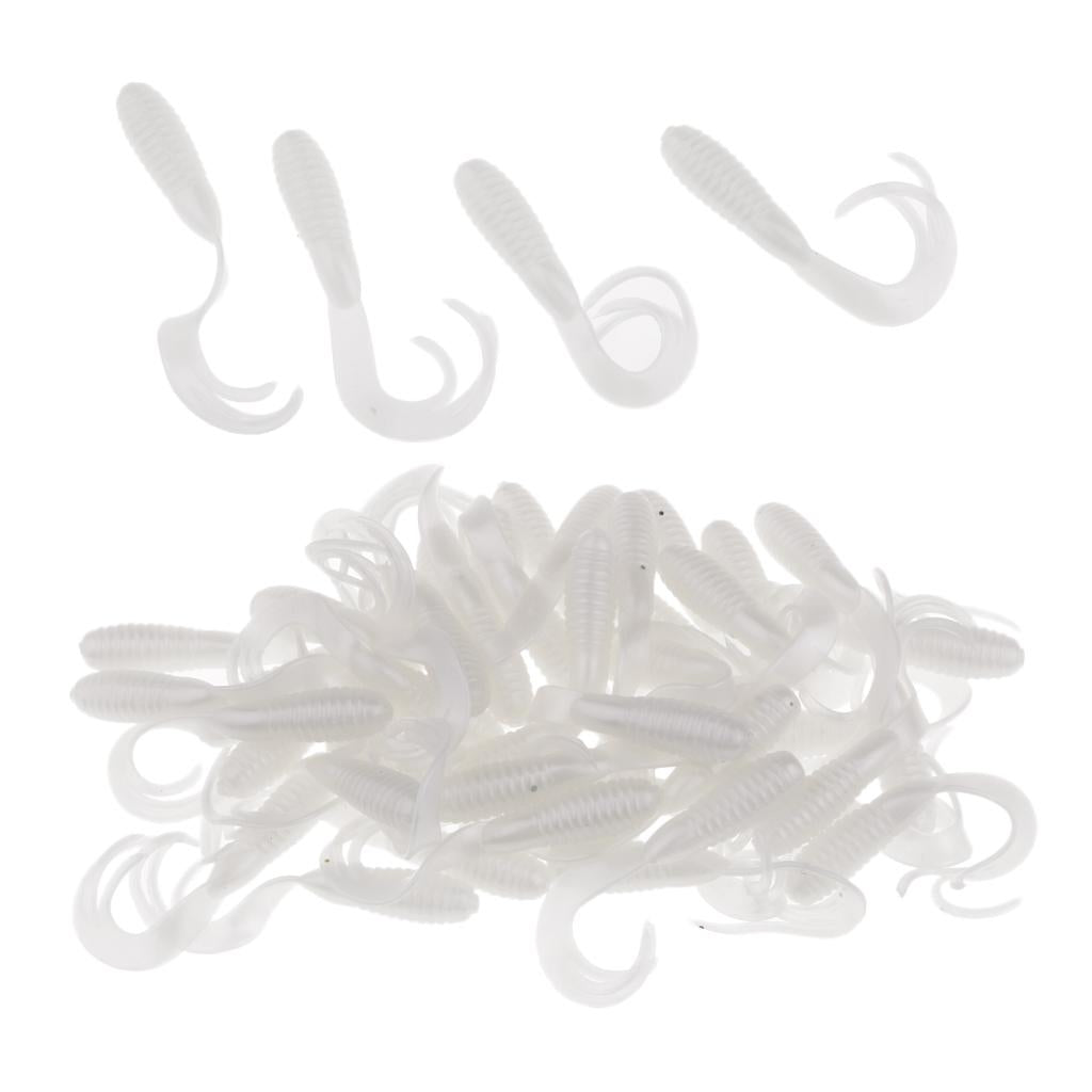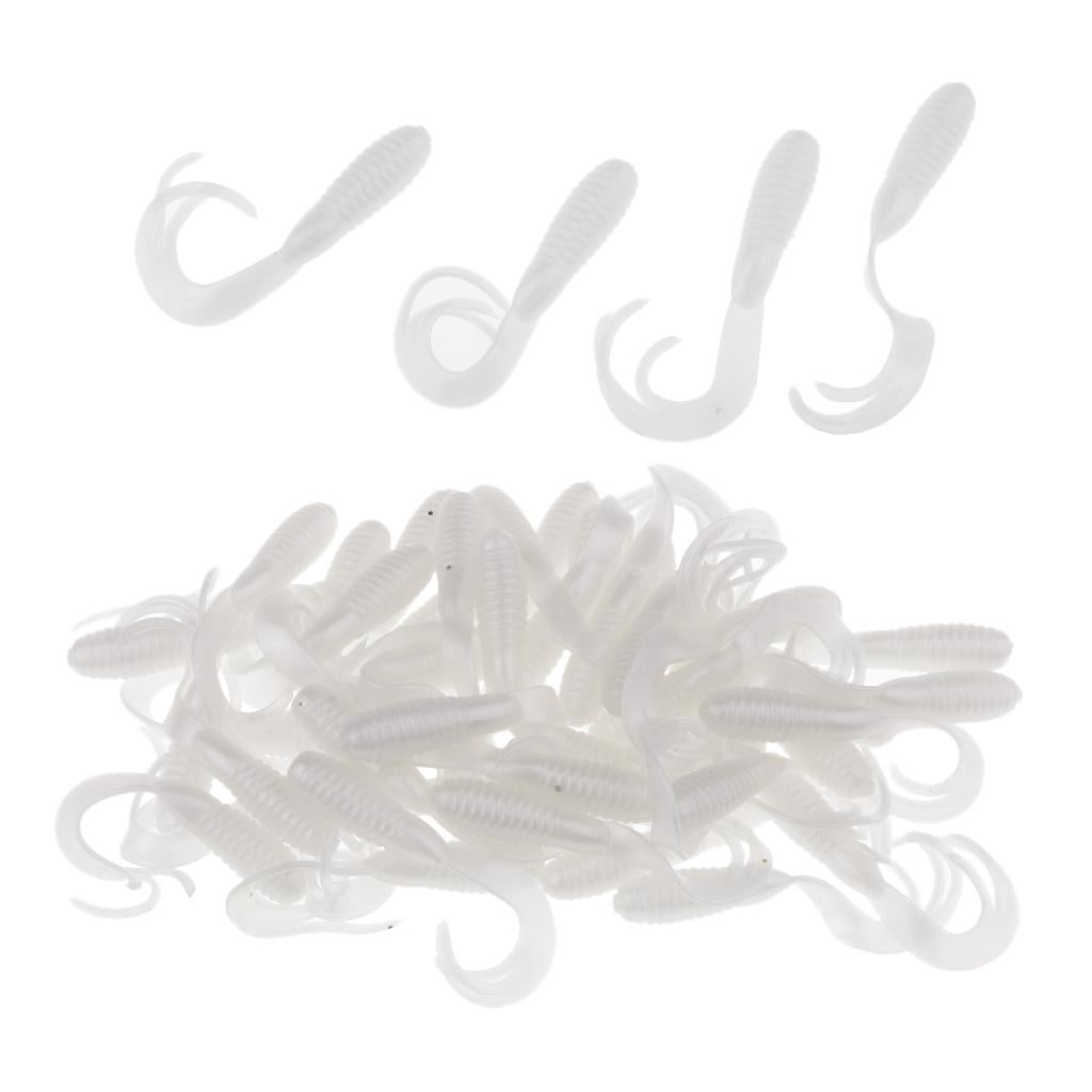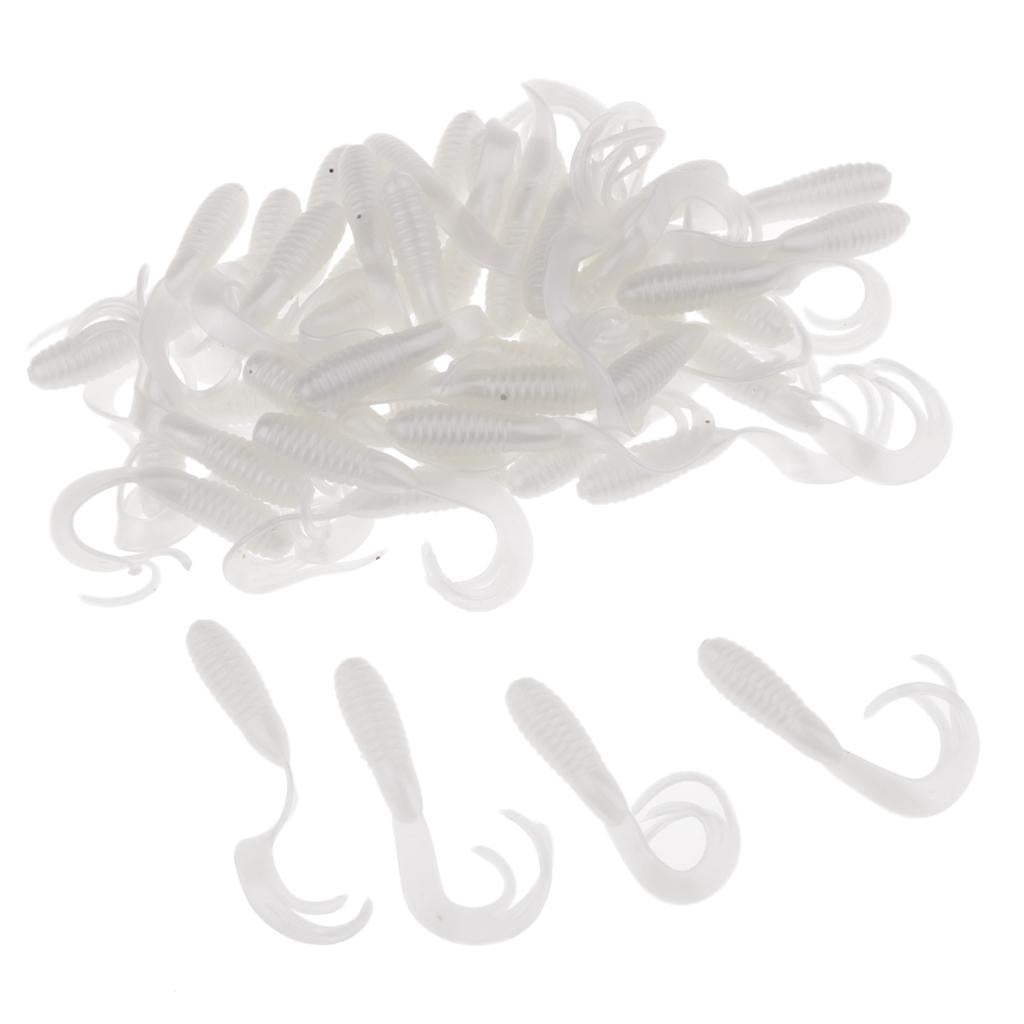 50pcs Soft Fishing Lure Curly Tail Shad Bait Grum Worms Jig Head Bait White