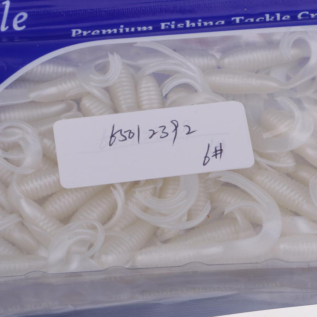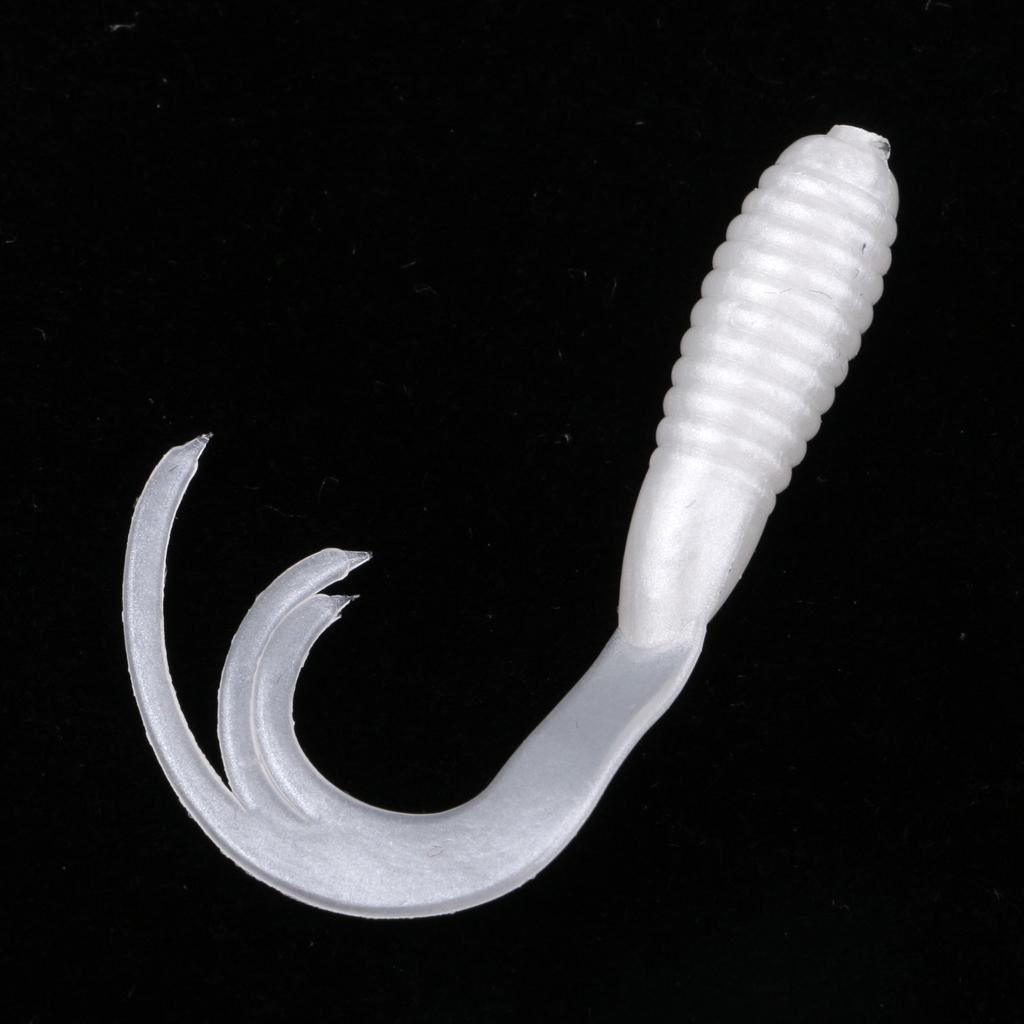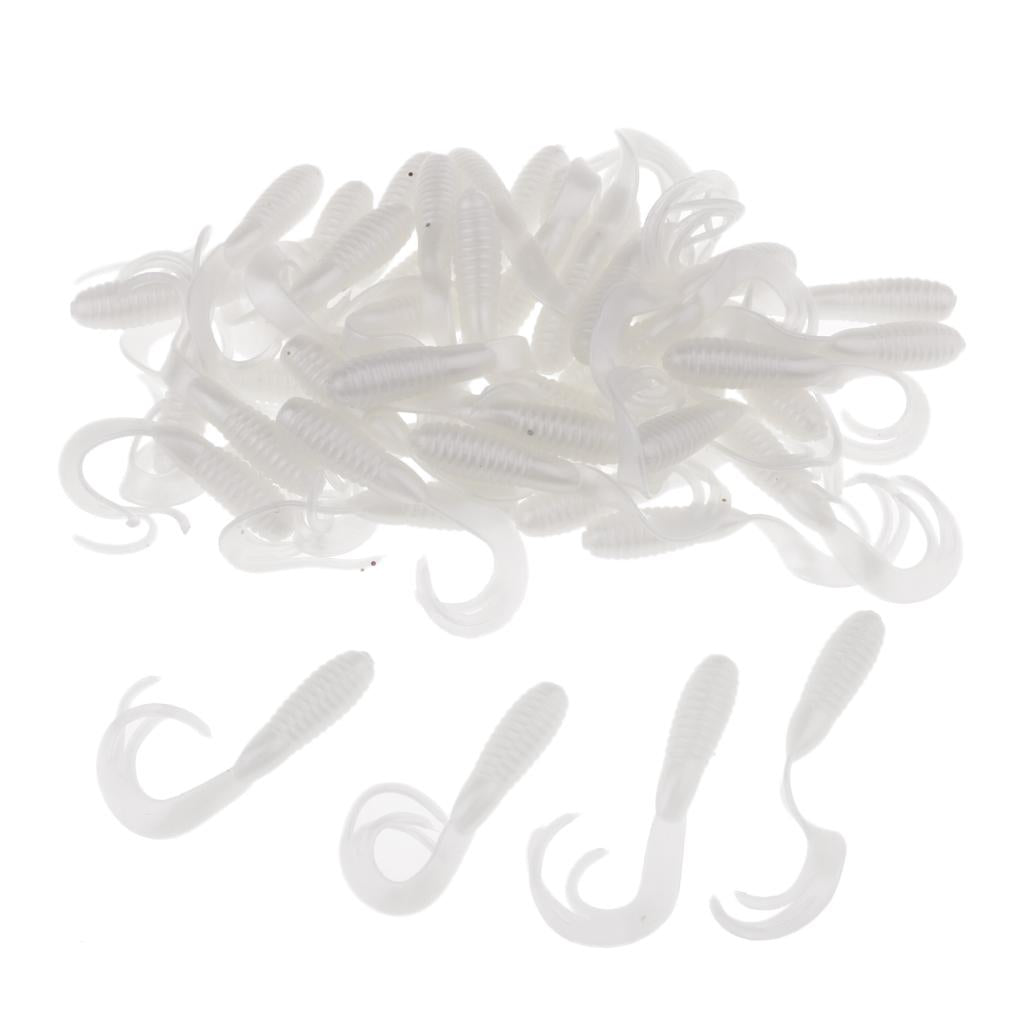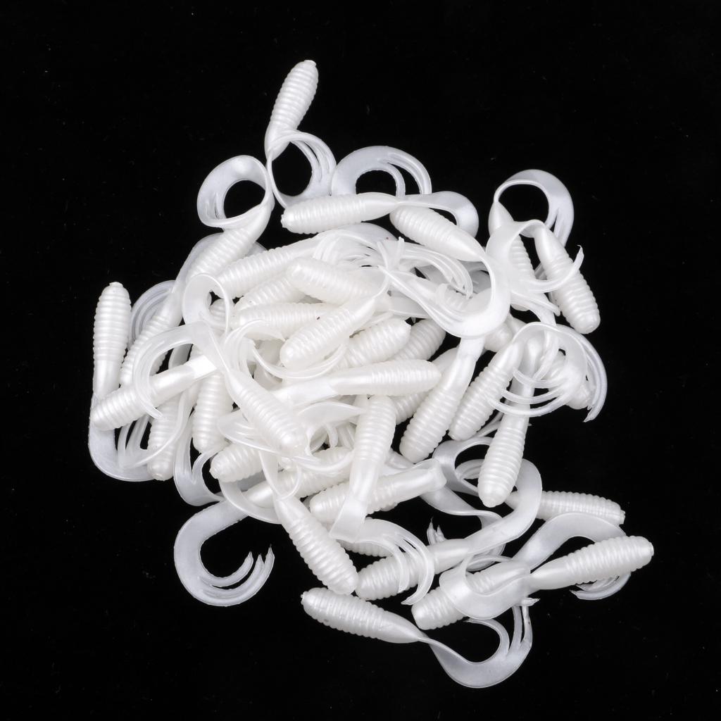 50pcs Soft Fishing Lure Curly Tail Shad Bait Grum Worms Jig Head Bait White