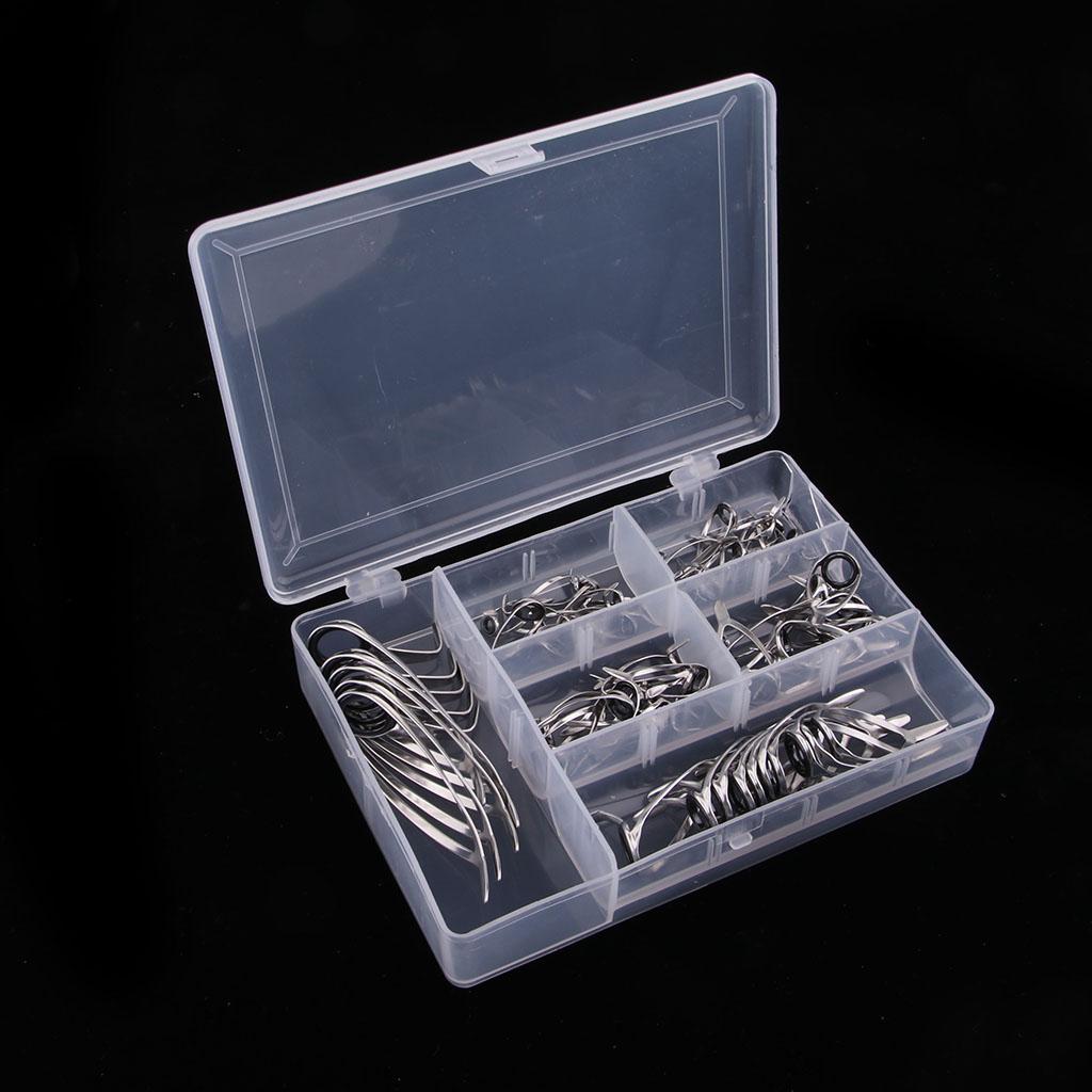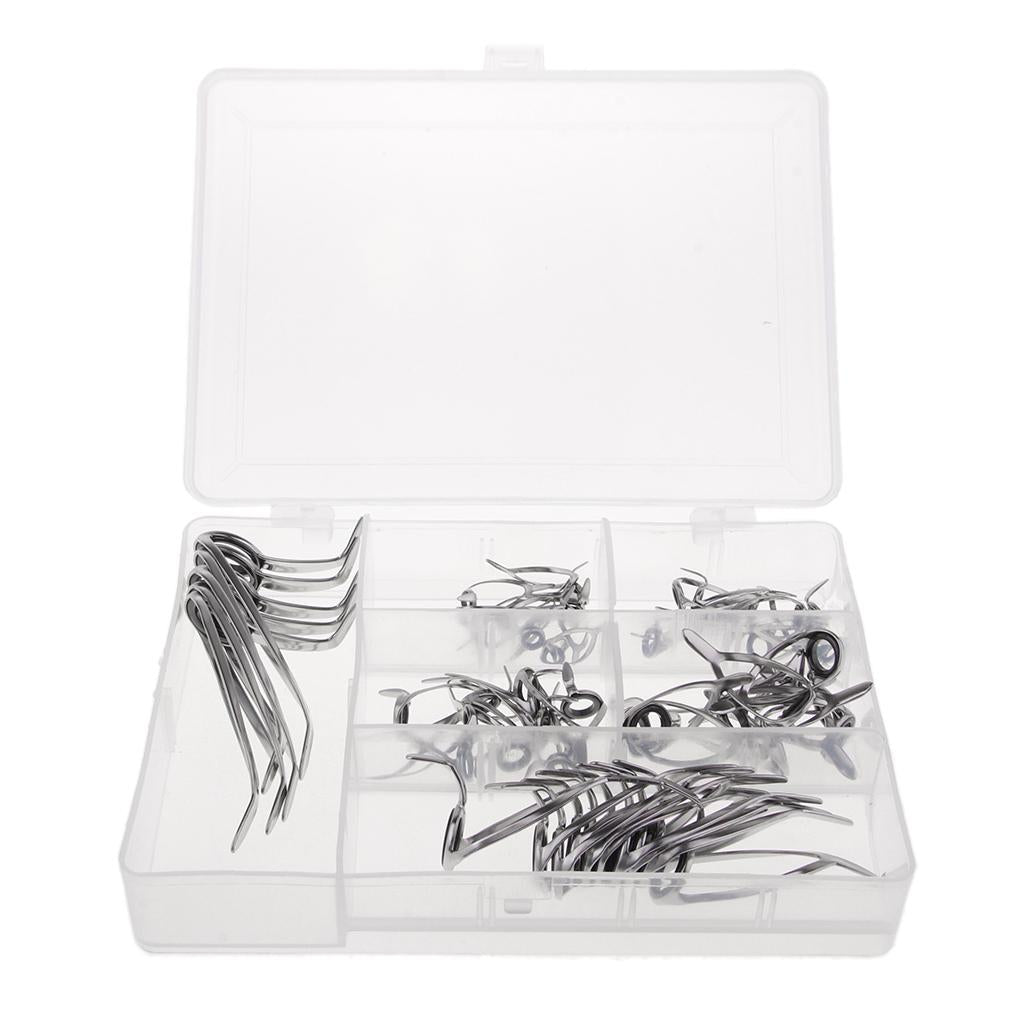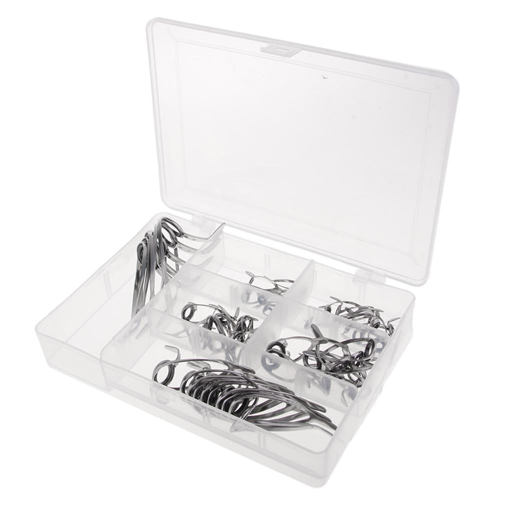 55pcs Fishing Rod Guides Set Tips Line Ring Stainless Steel Frame Ceramic Ring for Trolling Jigging 6 Sizes