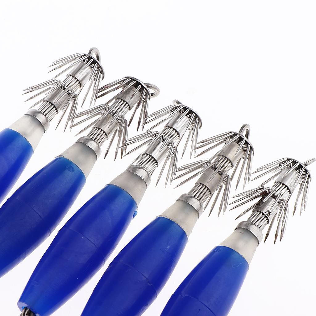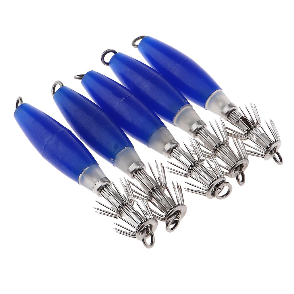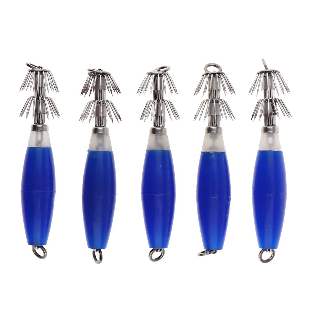 5pcs Luminous Blue Squid Jigs, Saltwater Fishing Lures, Octopus Squid Hooks