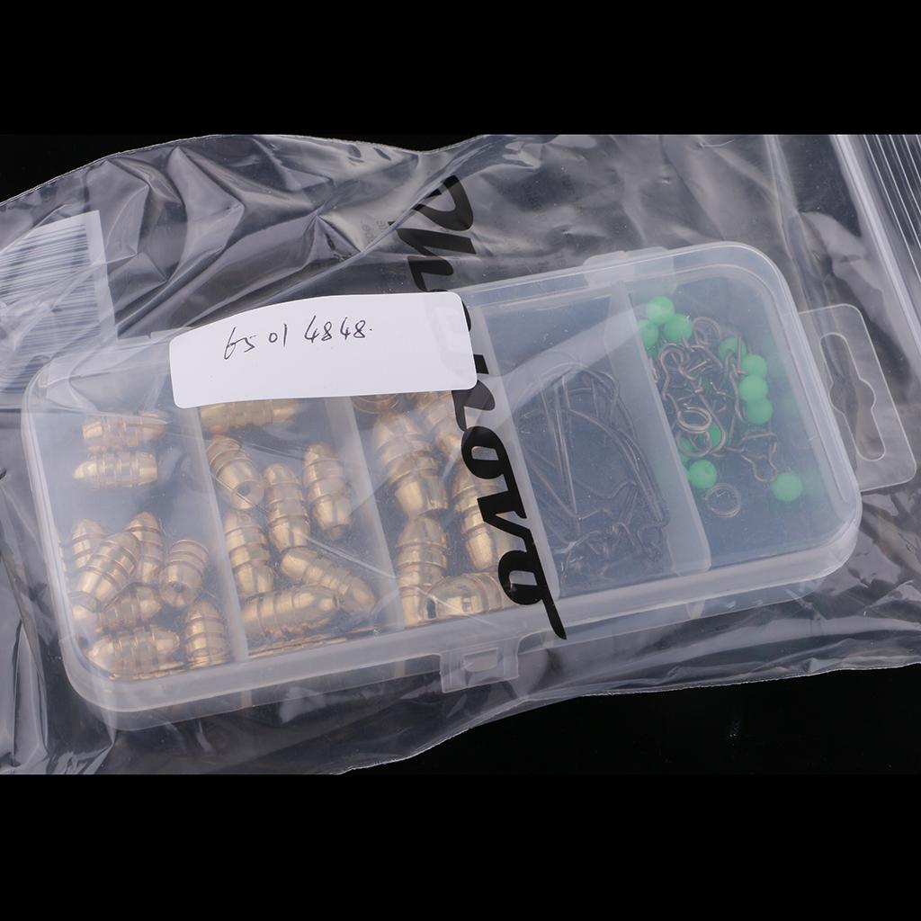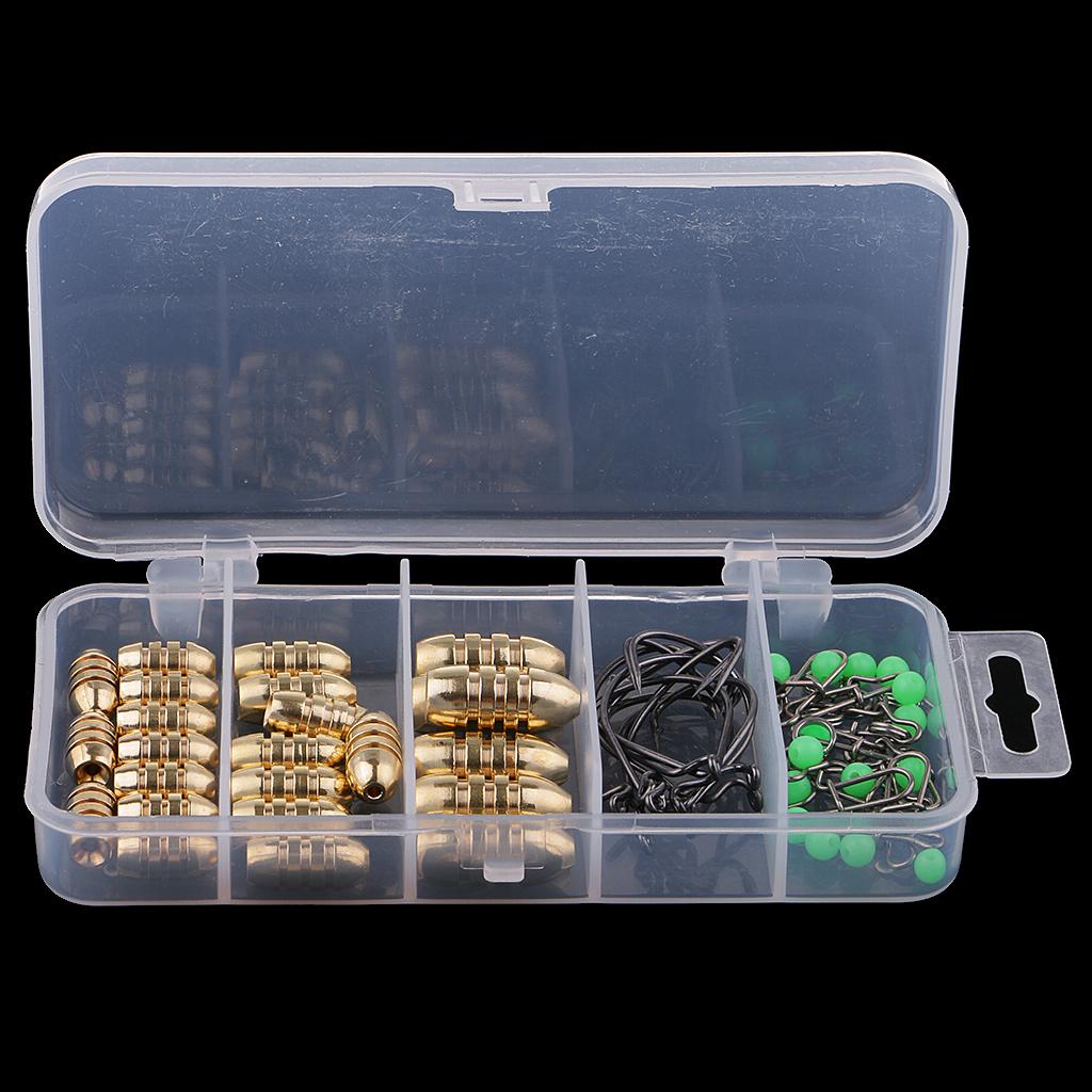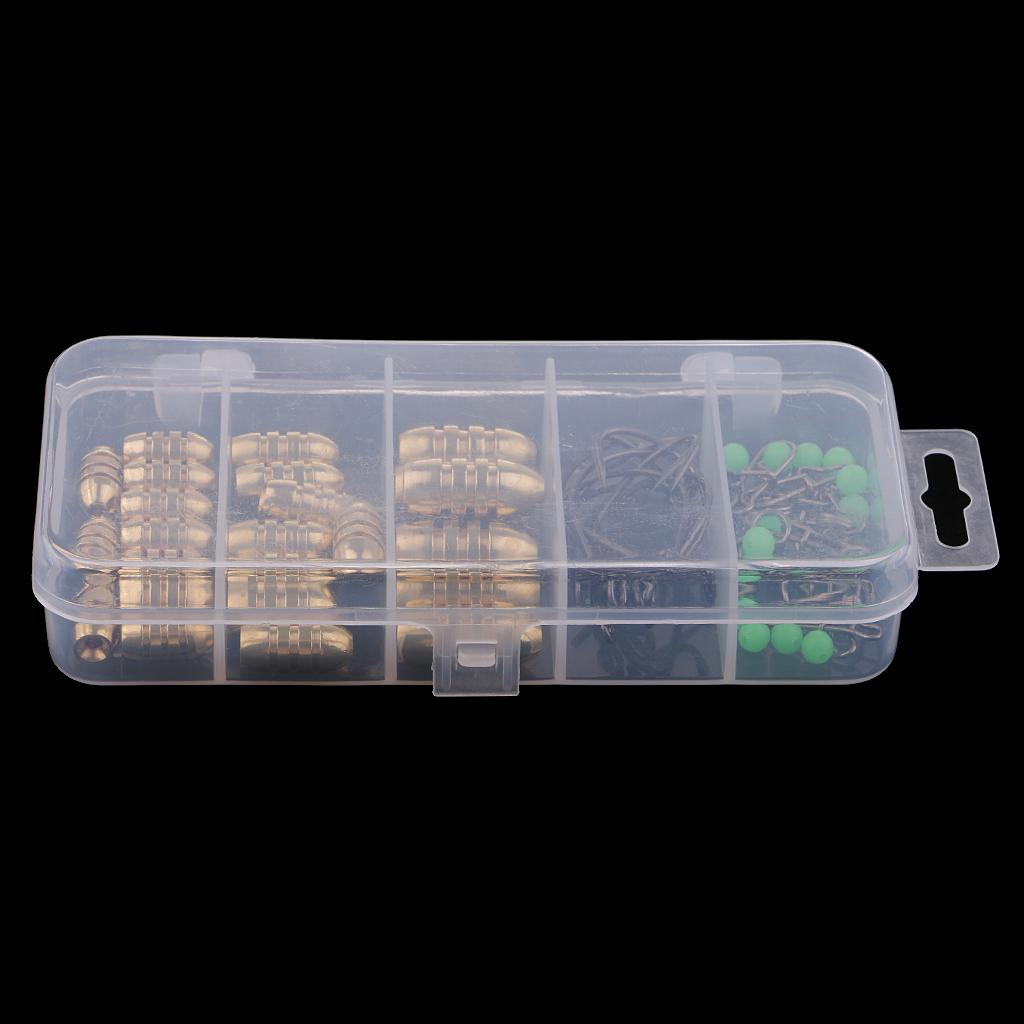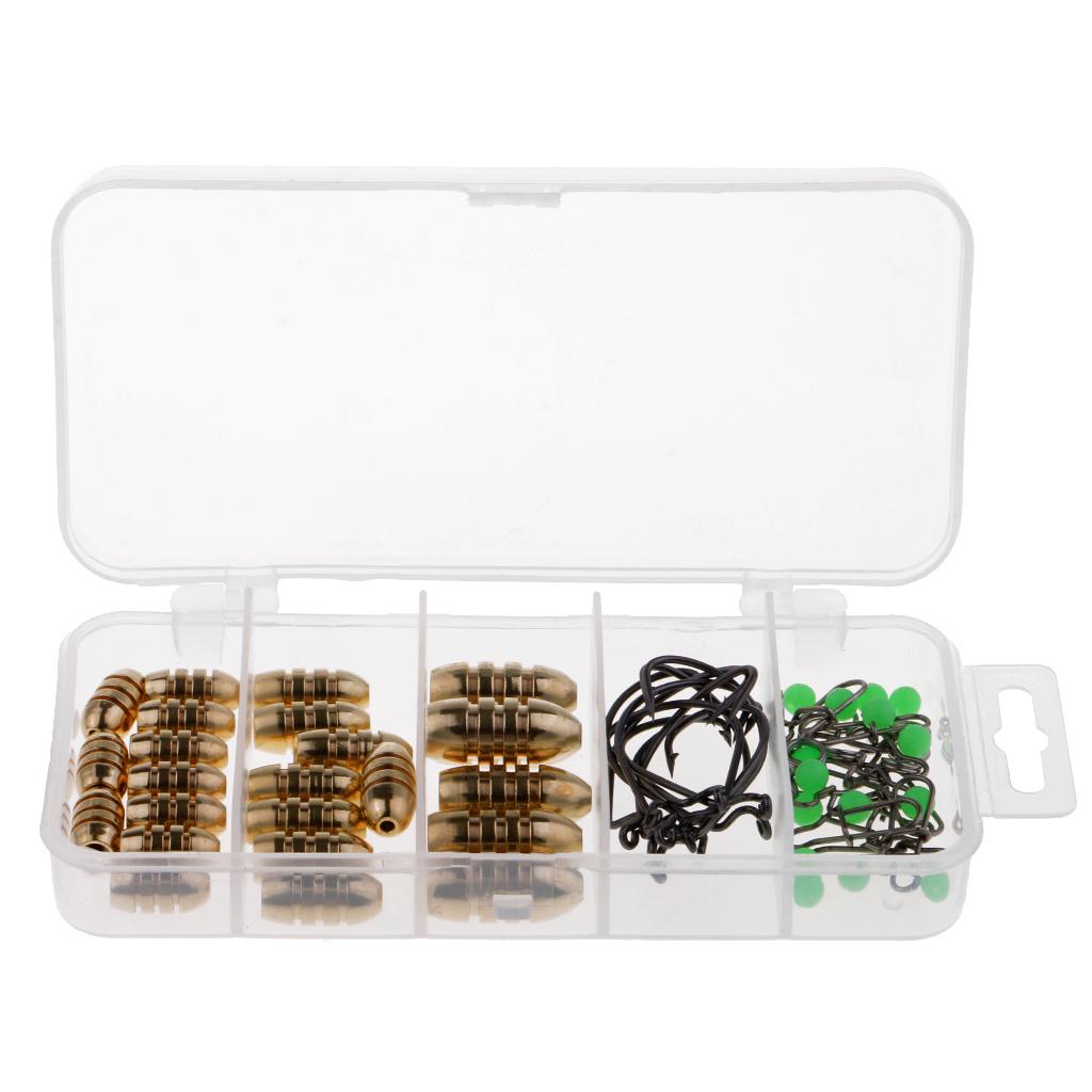 Carp fishing accessories kit includes weights sinker, jig hook, beads, split ring, snaps.