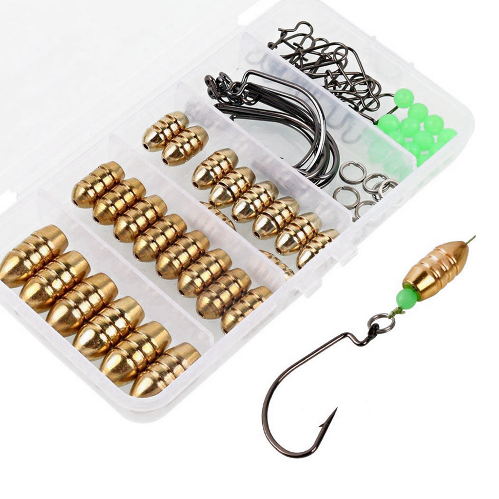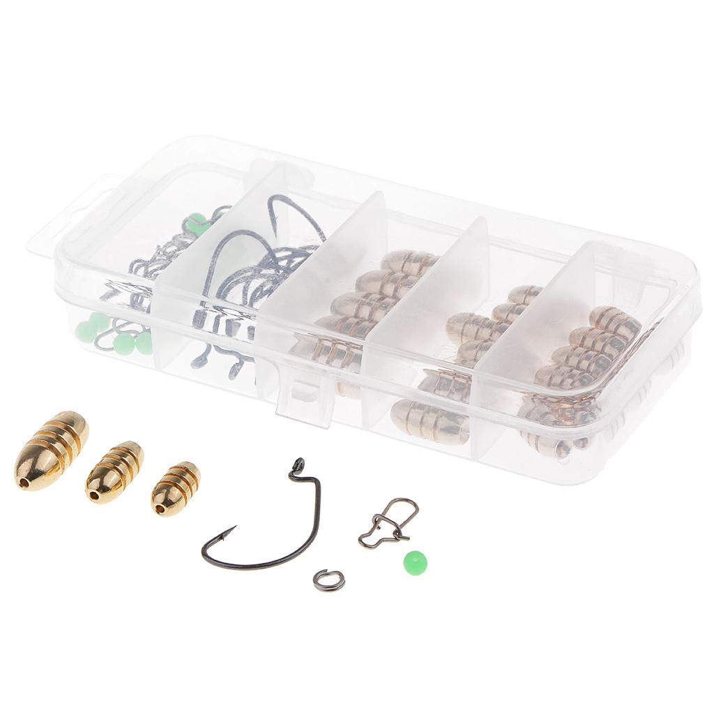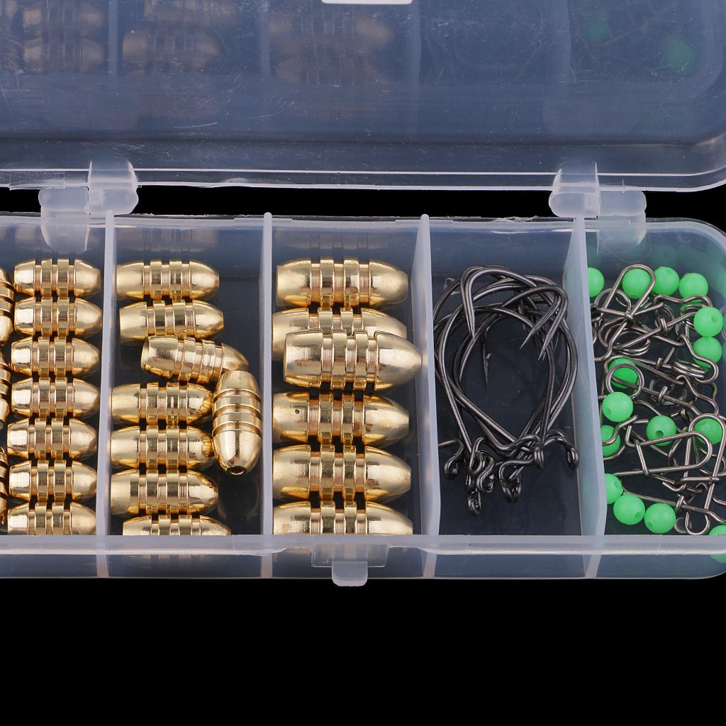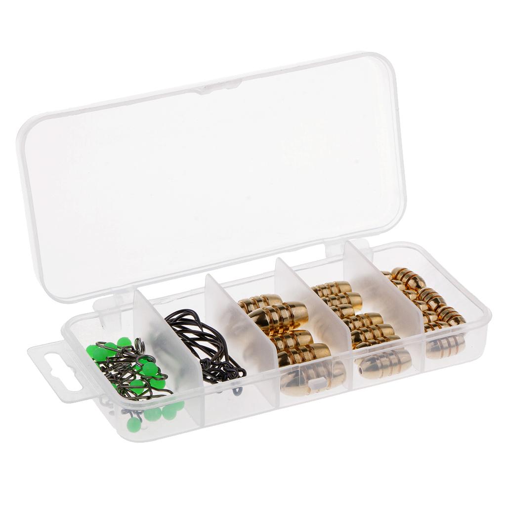 Carp fishing accessories kit includes weights sinker, jig hook, beads, split ring, snaps.