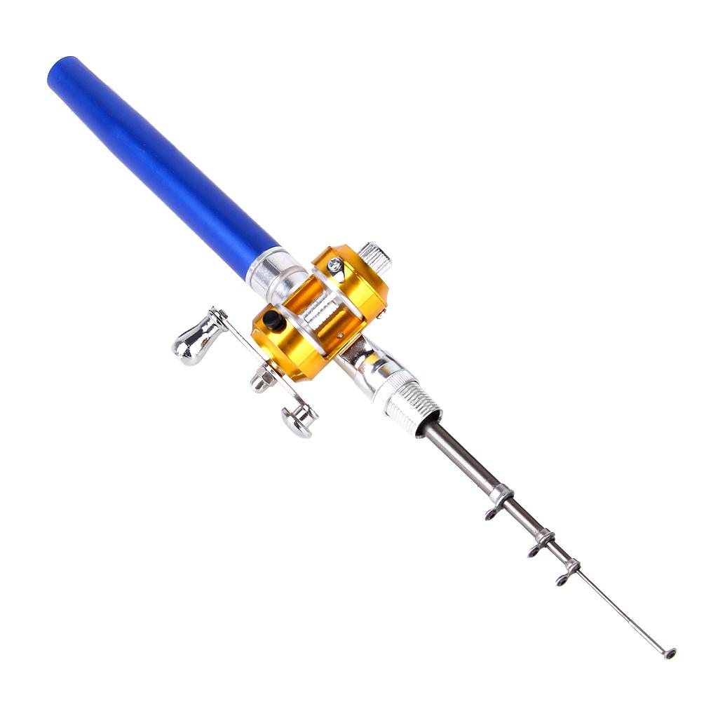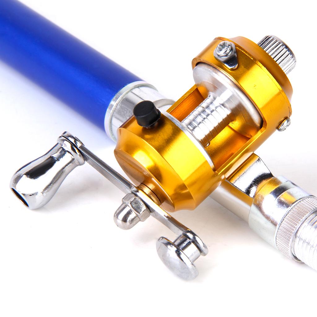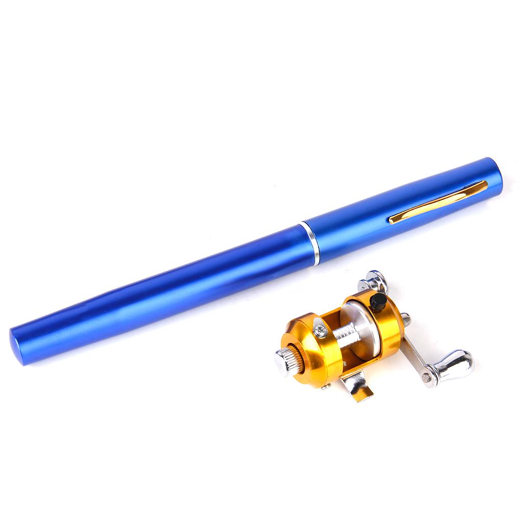 Blue Mini Pocket Aluminum Alloy Fish Pen Fishing Rod Pole with Baitcasting Reel