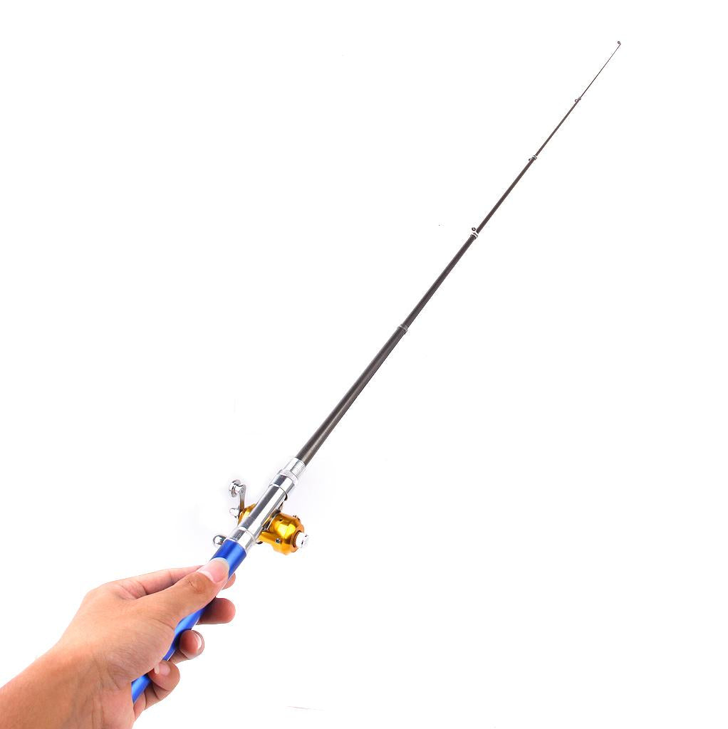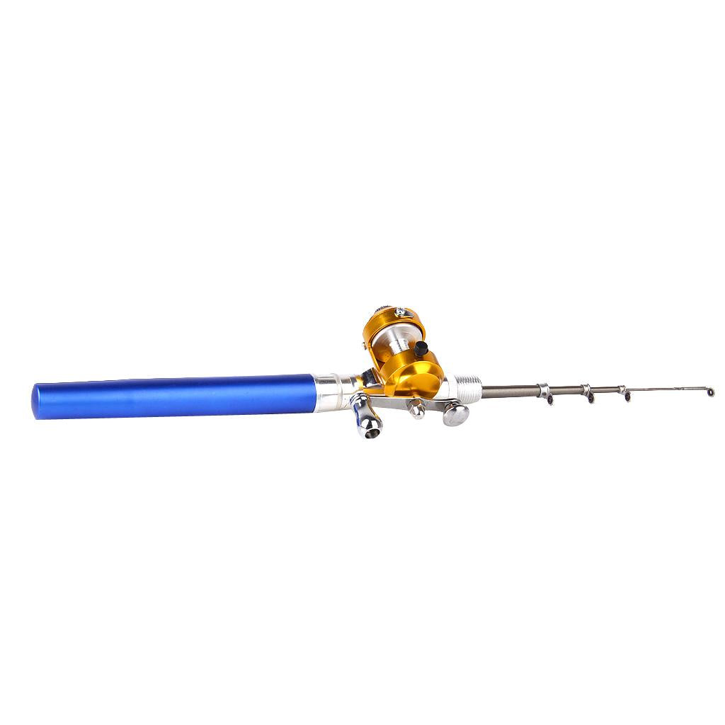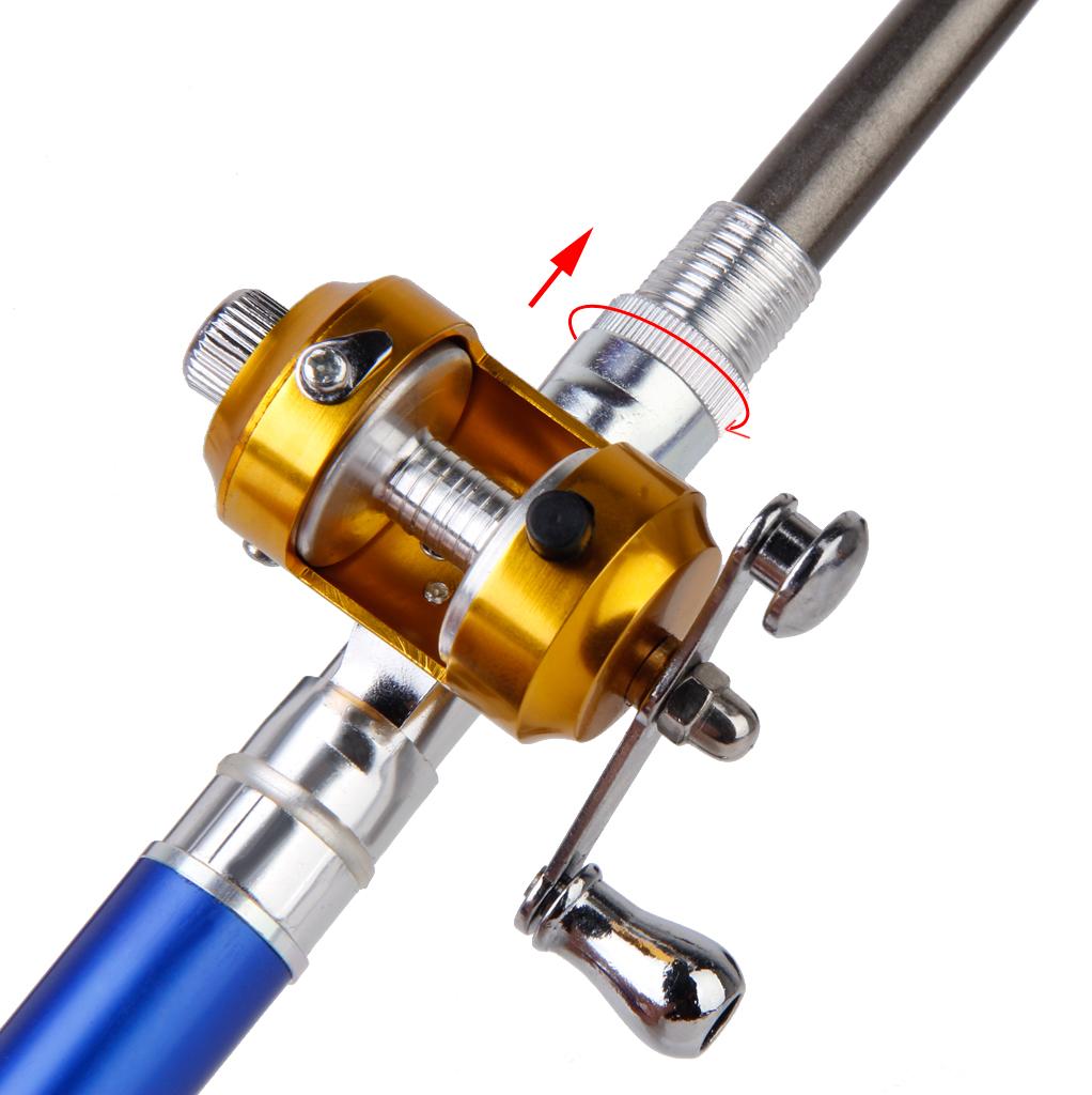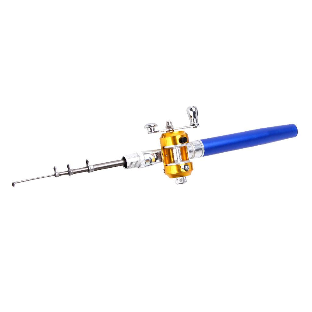 Blue Mini Pocket Aluminum Alloy Fish Pen Fishing Rod Pole with Baitcasting Reel