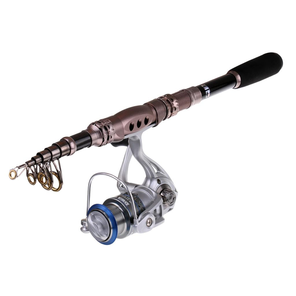 Fishing rod and reel set comes with a handy telescoping feature.