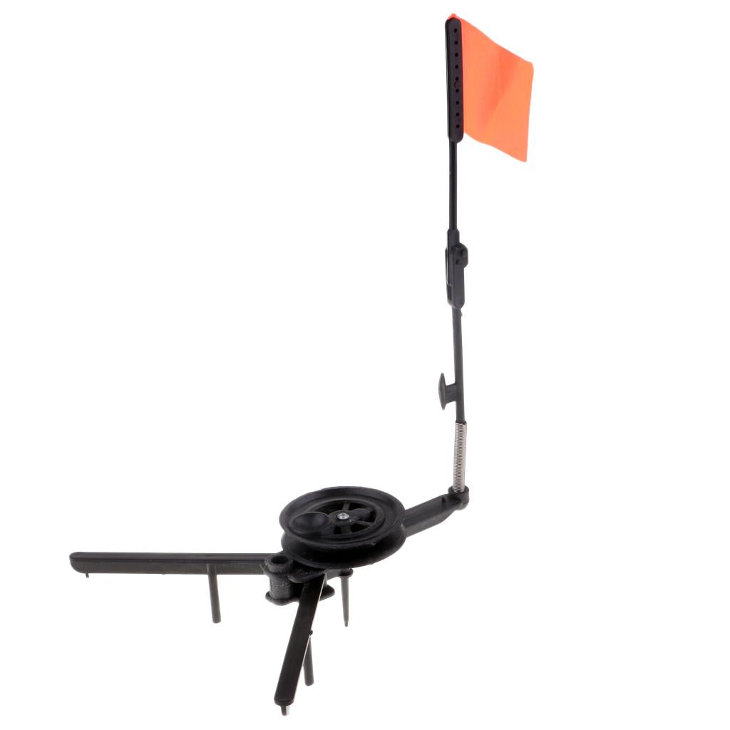 Foldable Ice Fishing Rod with Flag Round Tip-Up Ice Fishing Orange Flag Fishing Equipment
