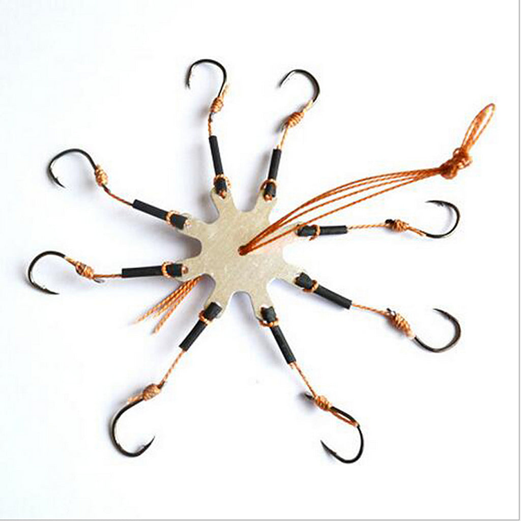 Each plate has 8 holes, so that you could tie 8 hooks to increase the rate that the fish rise up.