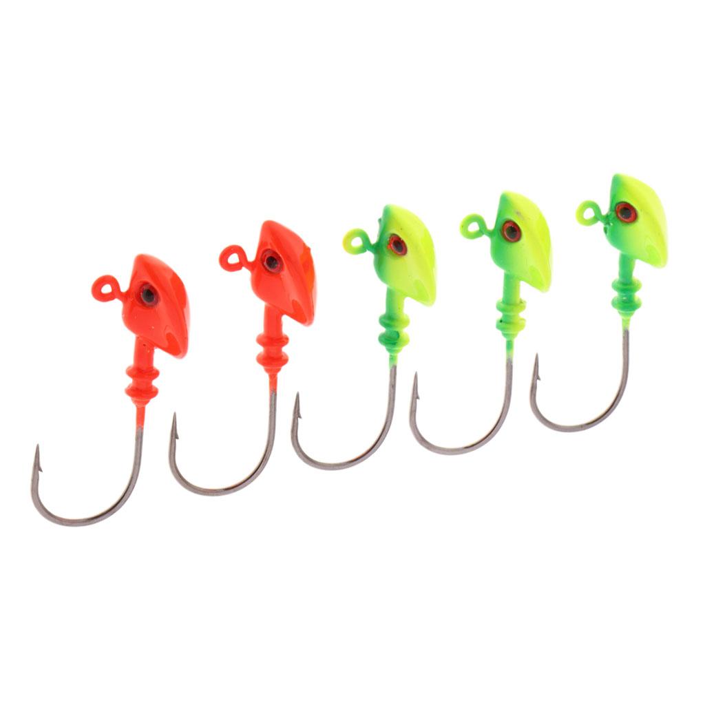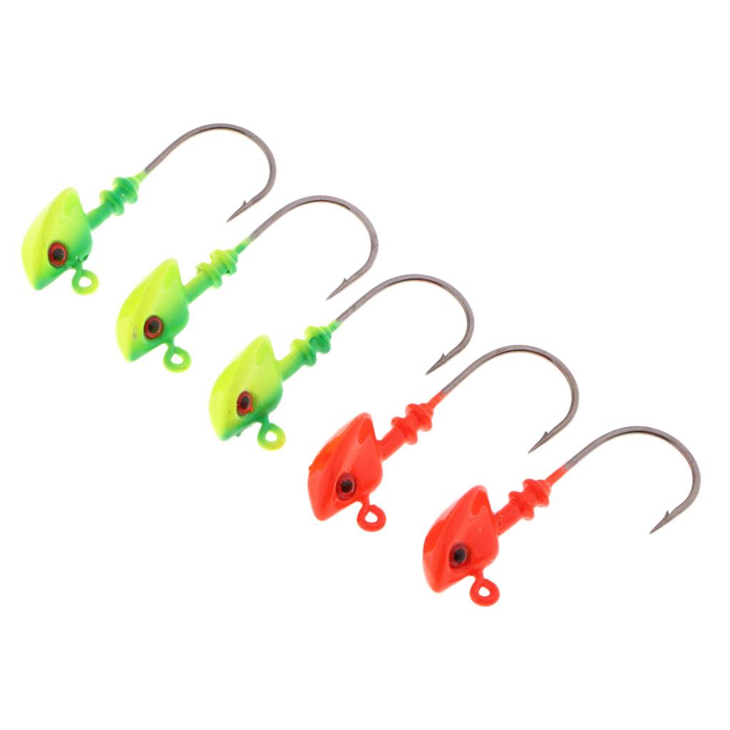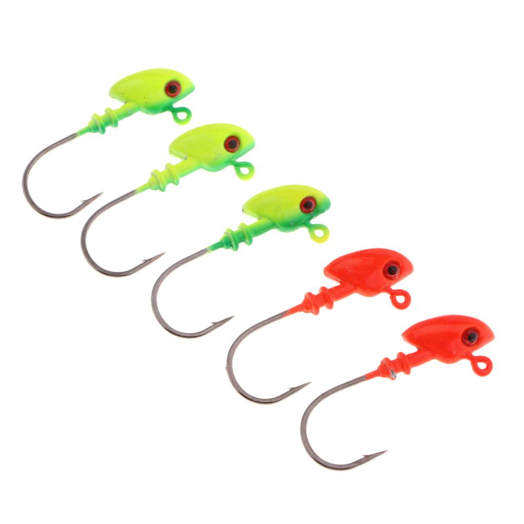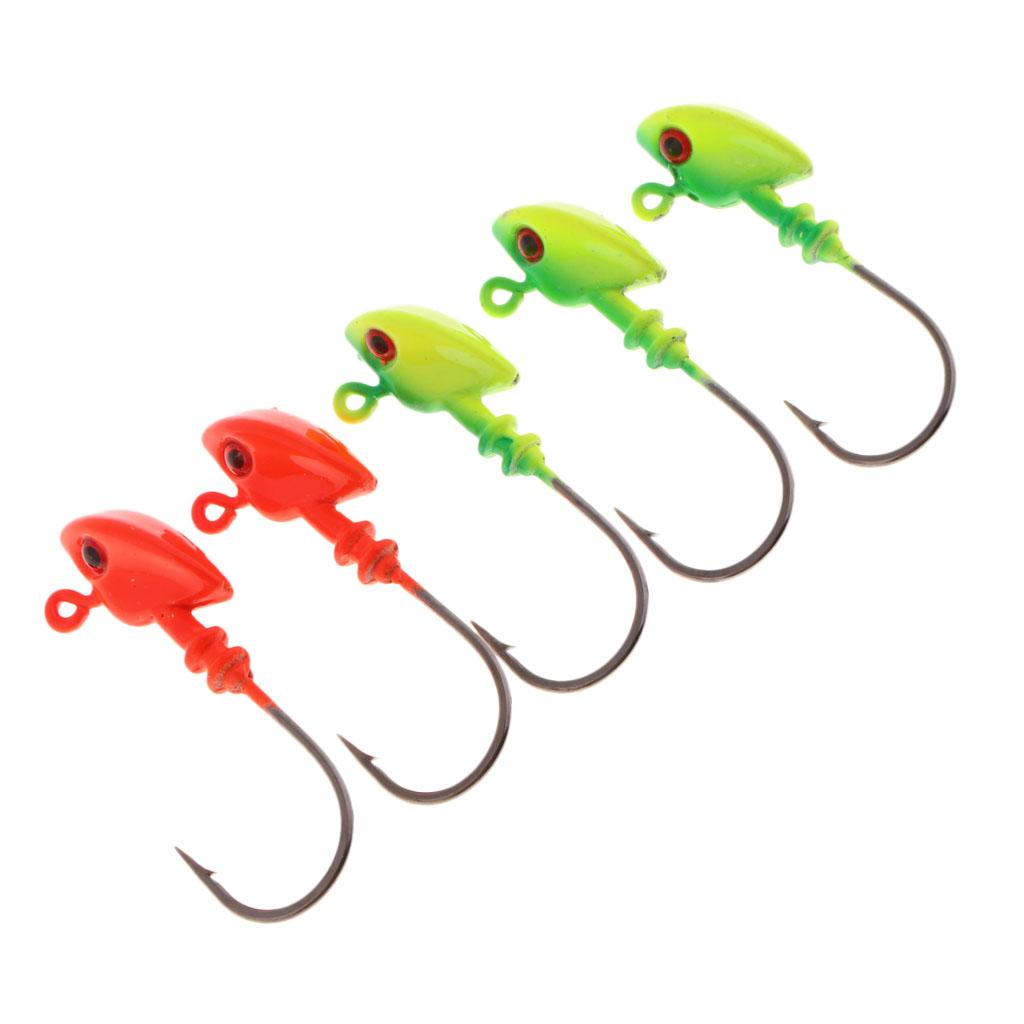 5Pcs Jig Head Fishing Hooks, often used with soft worm lures.