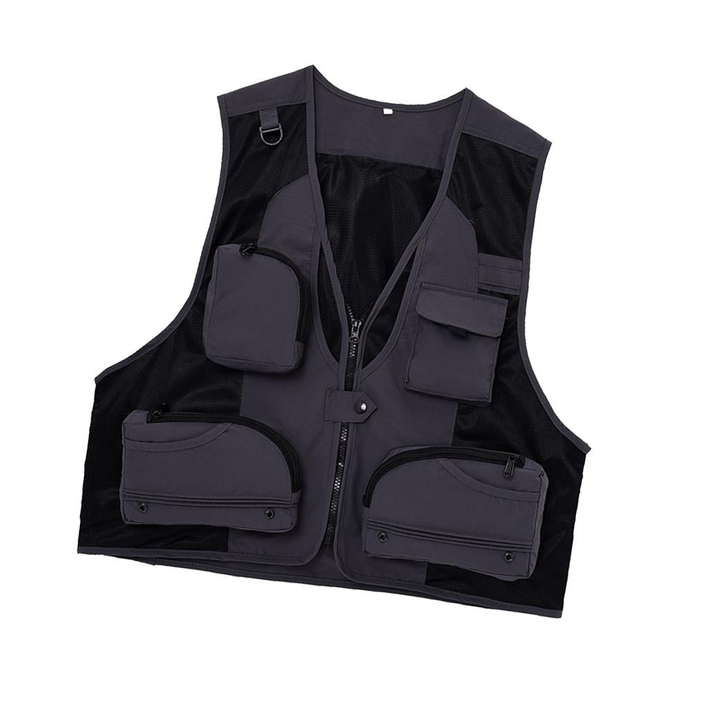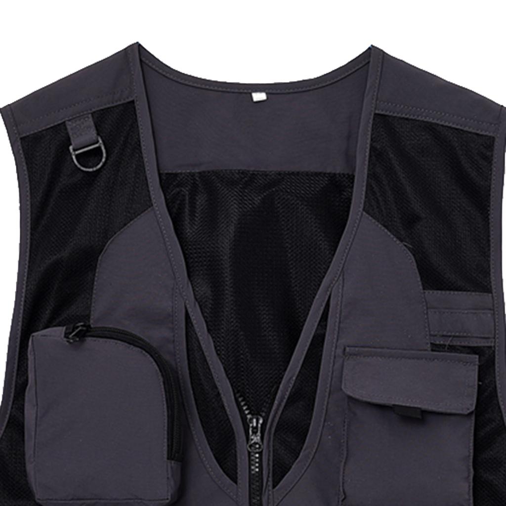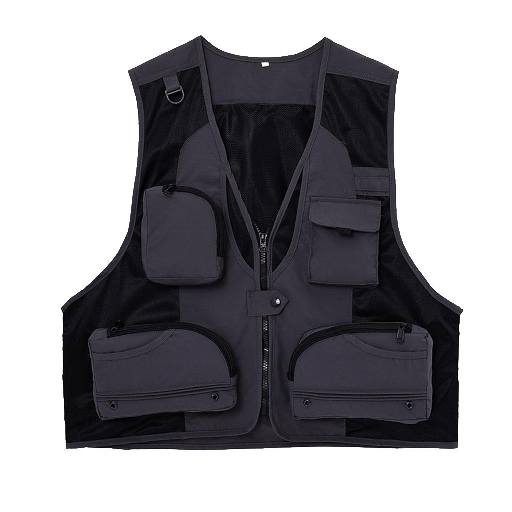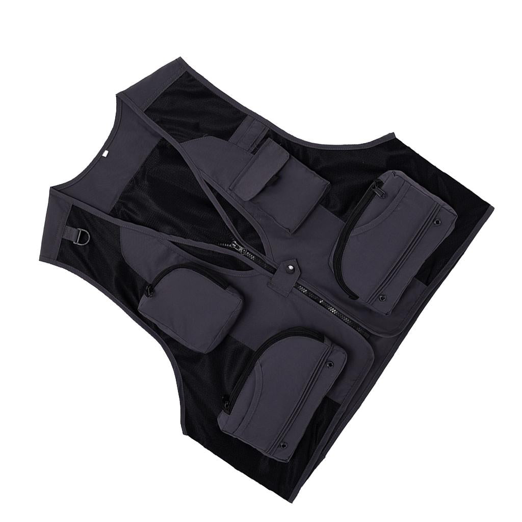 Mens Multi Pockets Fishing Hunting Photography Mesh Vest Jacket Dark Grey L