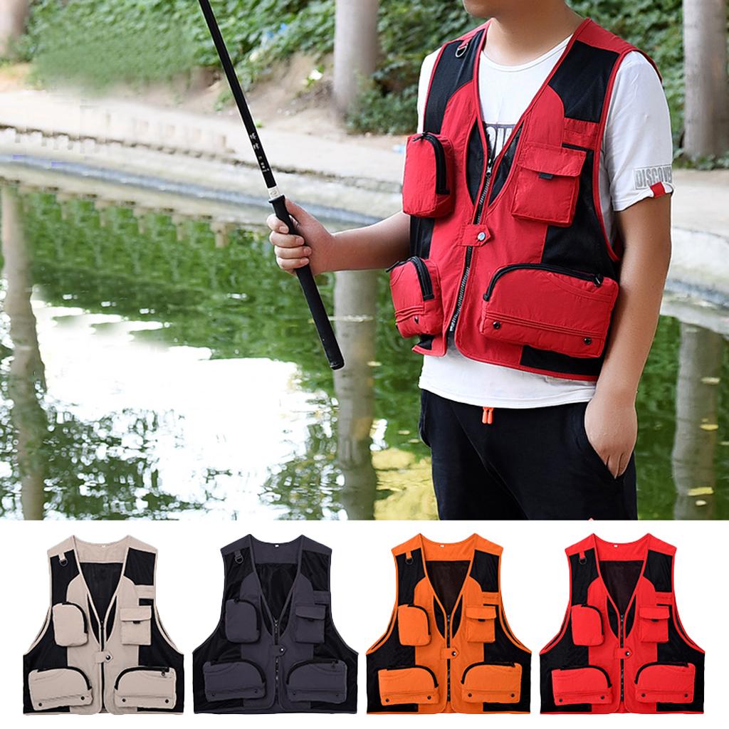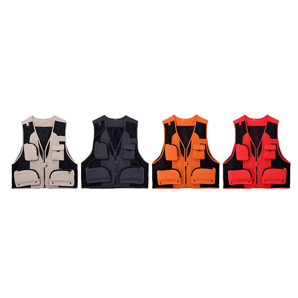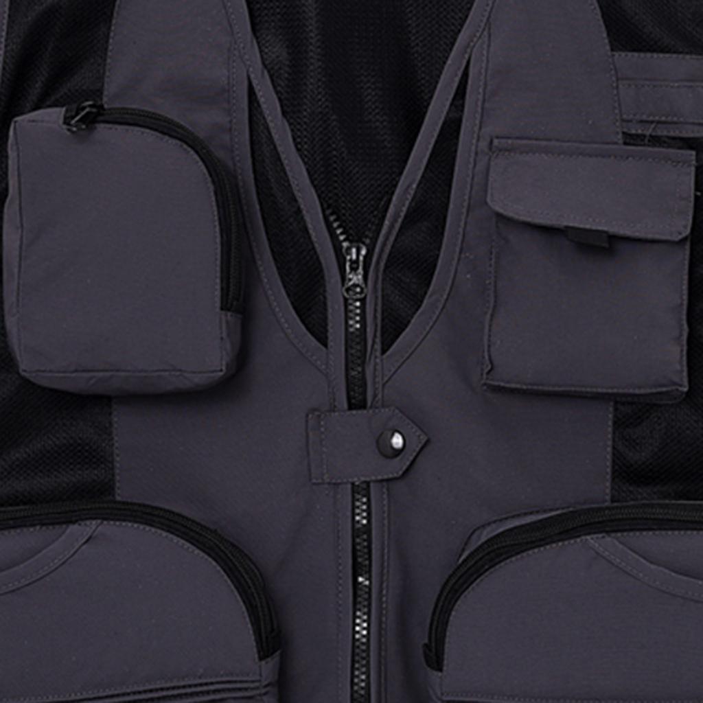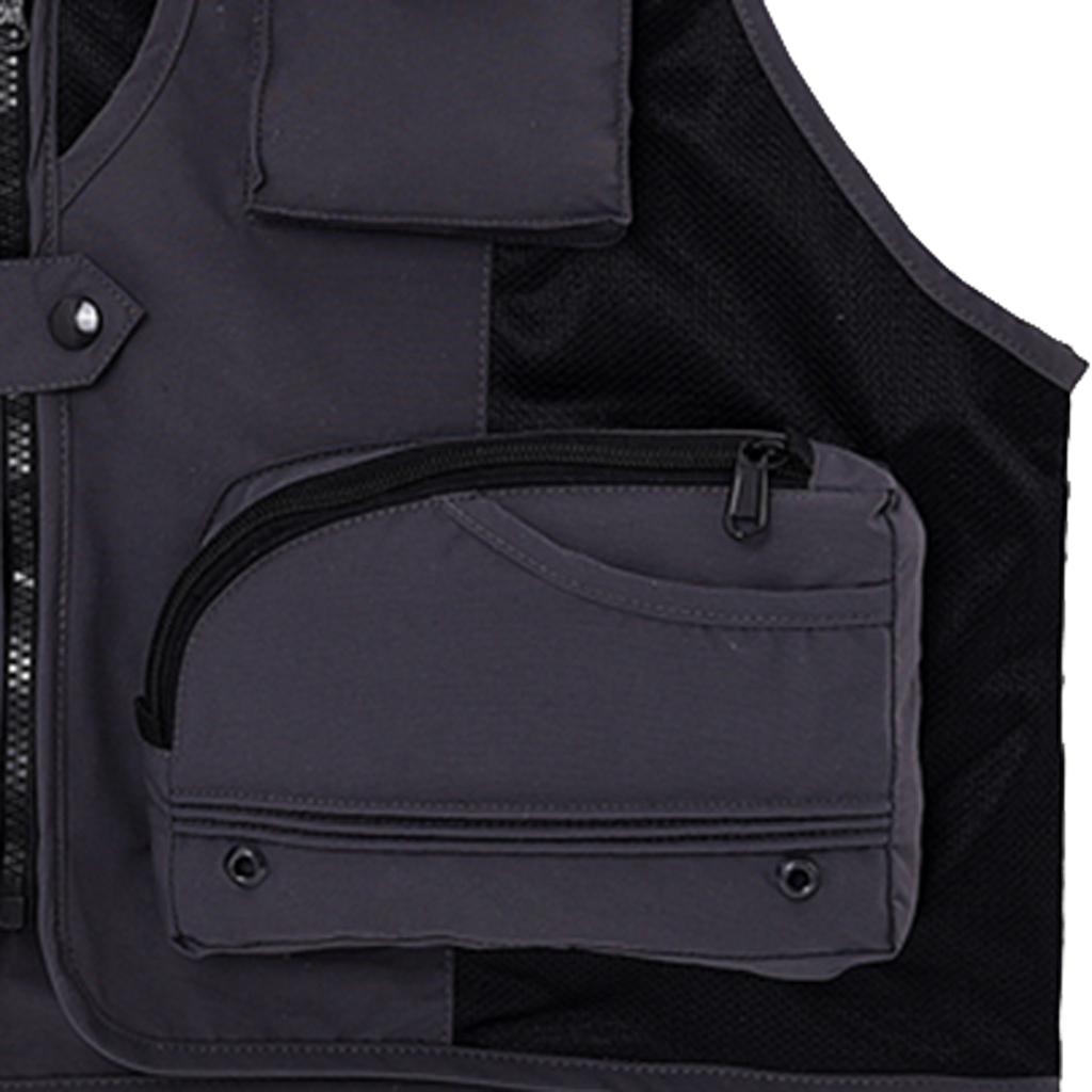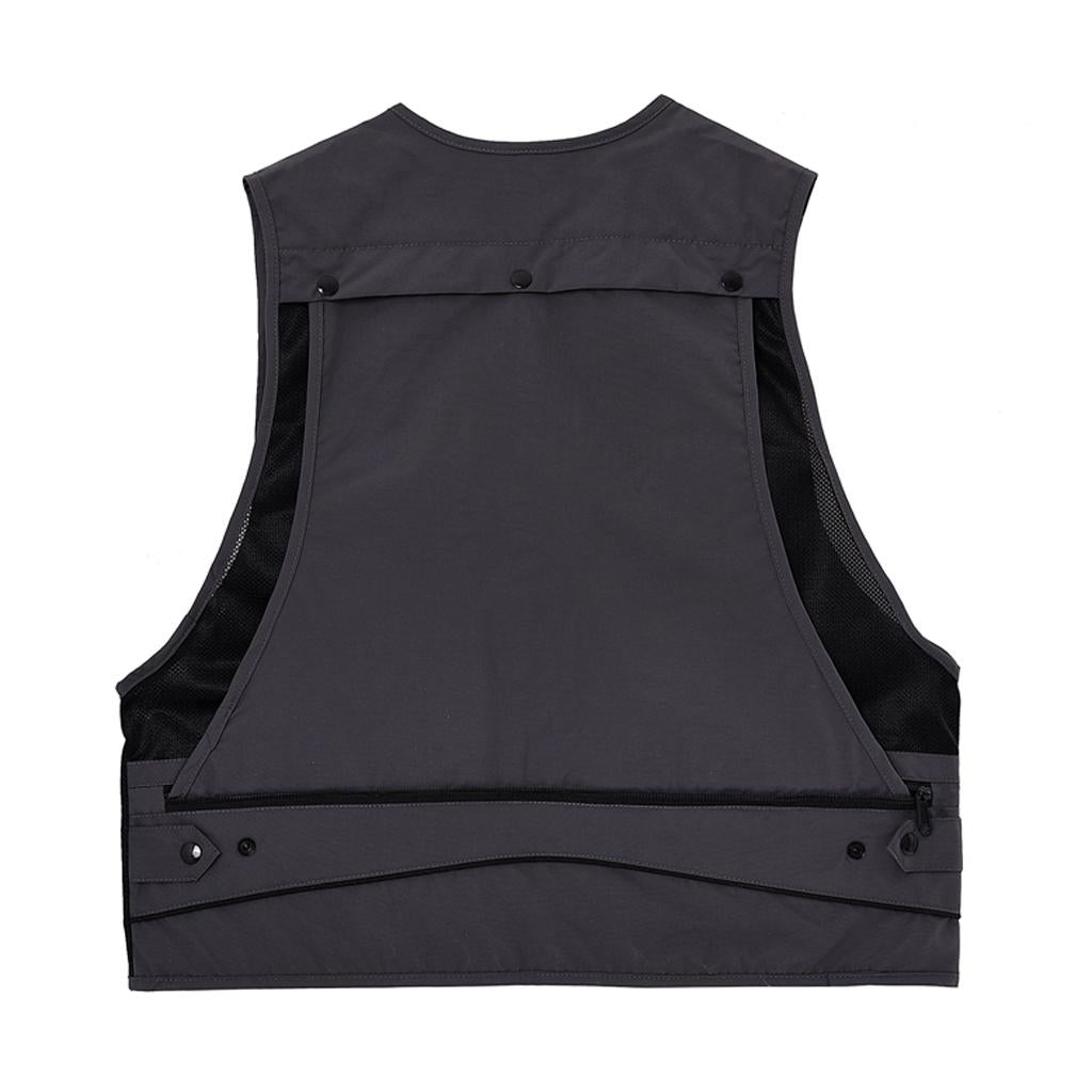 Mens Multi Pockets Fishing Hunting Photography Mesh Vest Jacket Dark Grey L