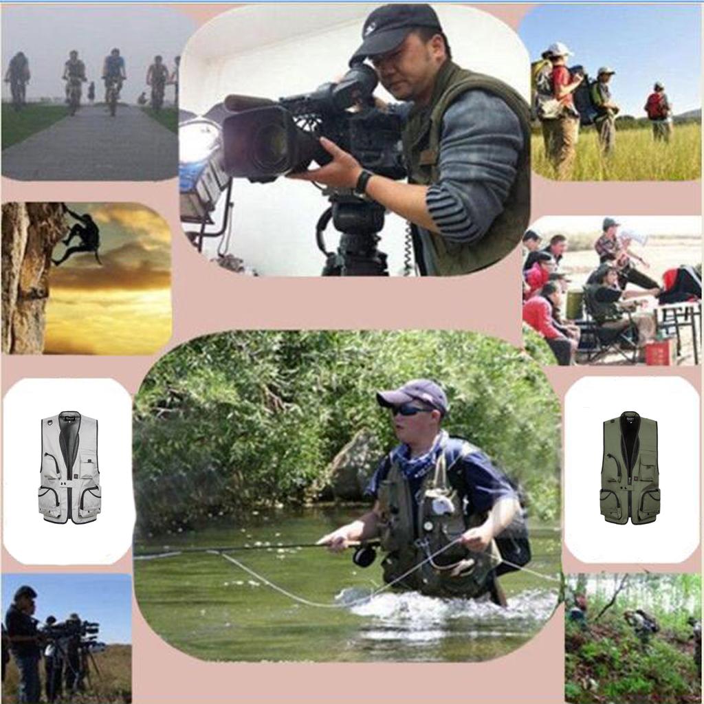 Multi Pocket Fishing Mesh Vest Outdoor Hunting Travel Jacket 4XL Army Green
