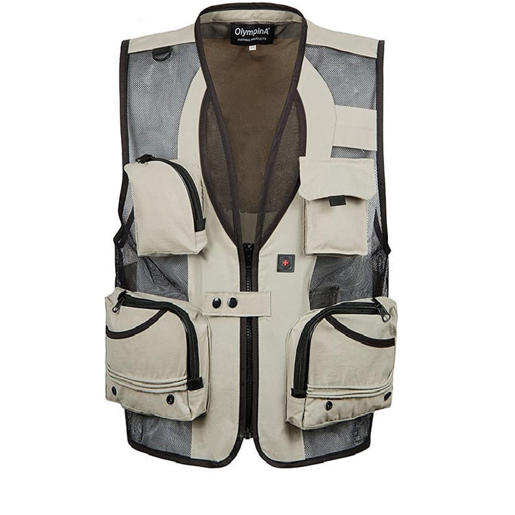 Multi-Pocket Fishing Mesh Vest Photography Quick-Dry Jacket XL Khaki