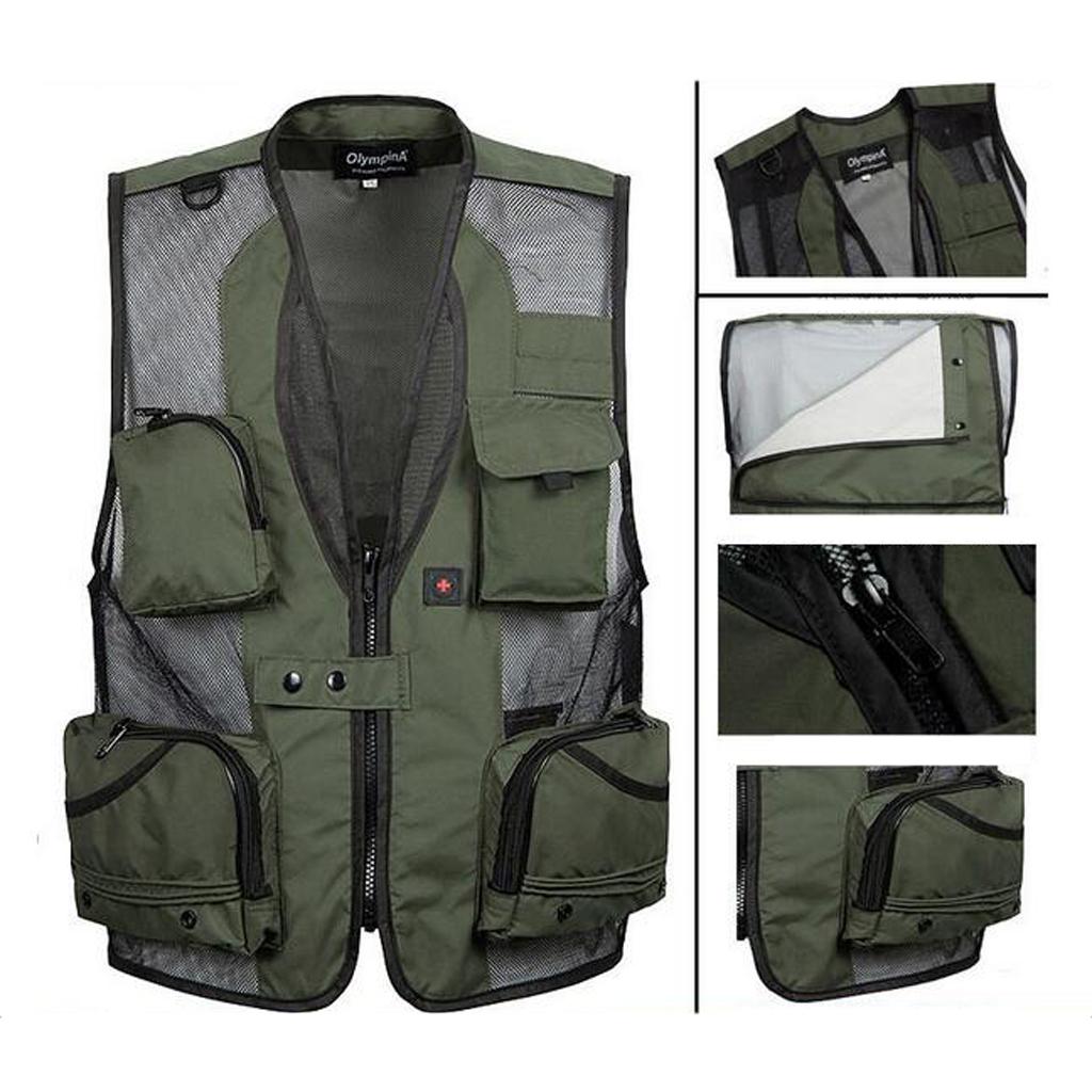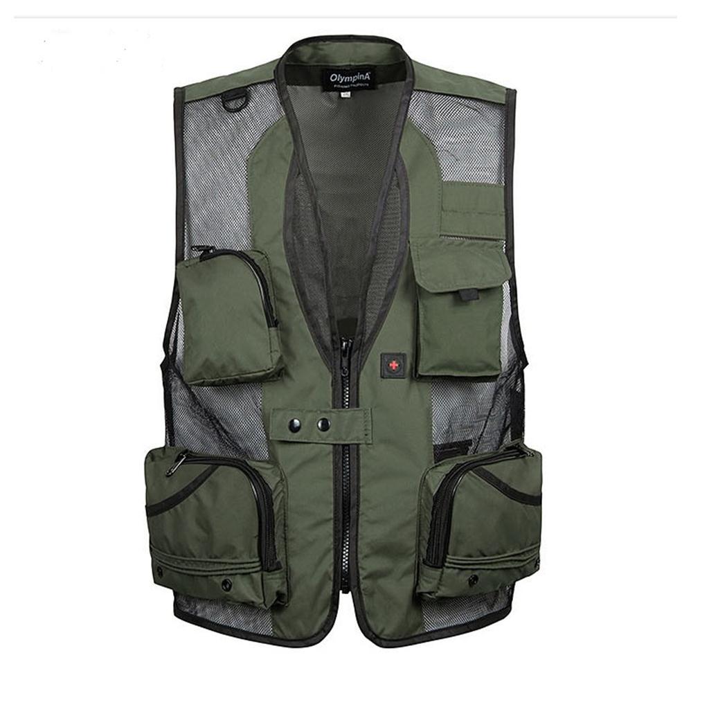 Multi-Pocket Fishing Mesh Vest Photography Quick-Dry Jacket XXXL Army Green