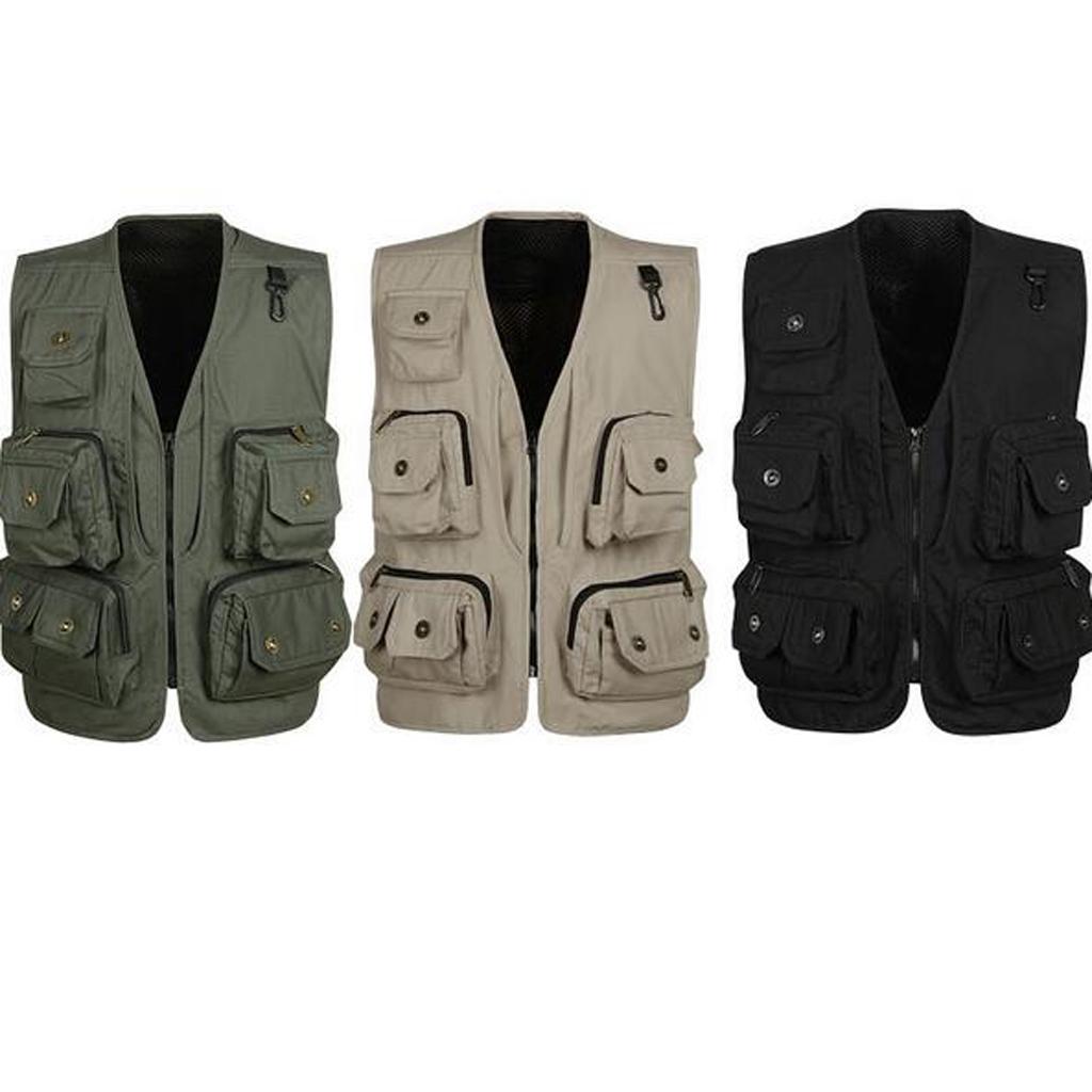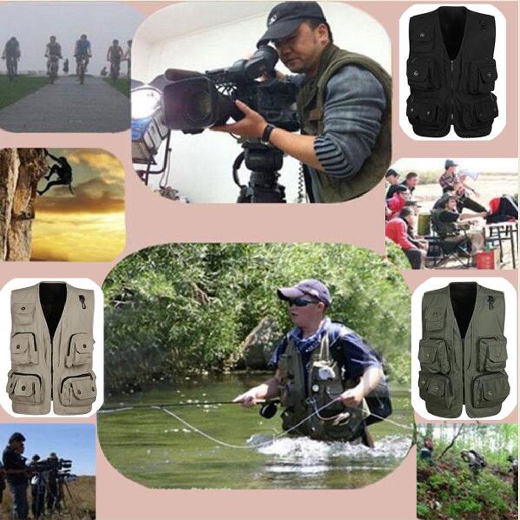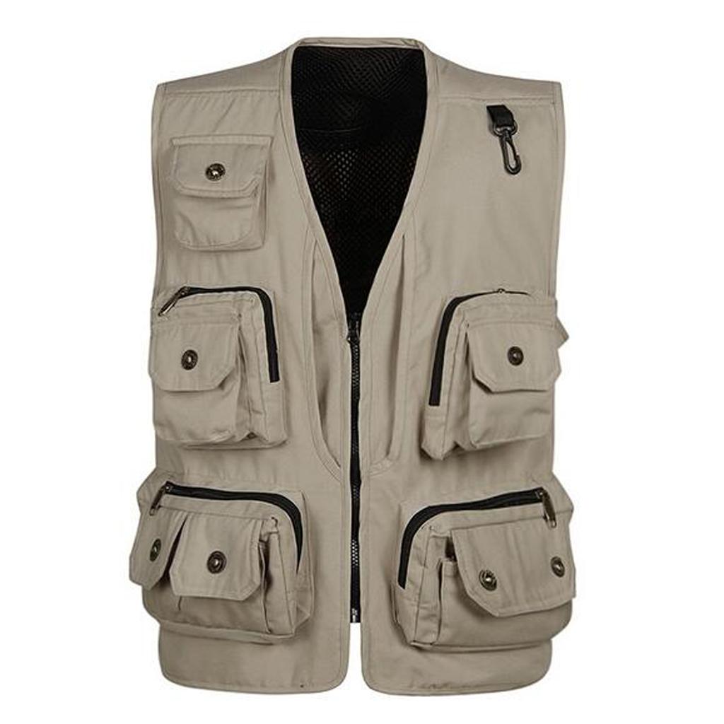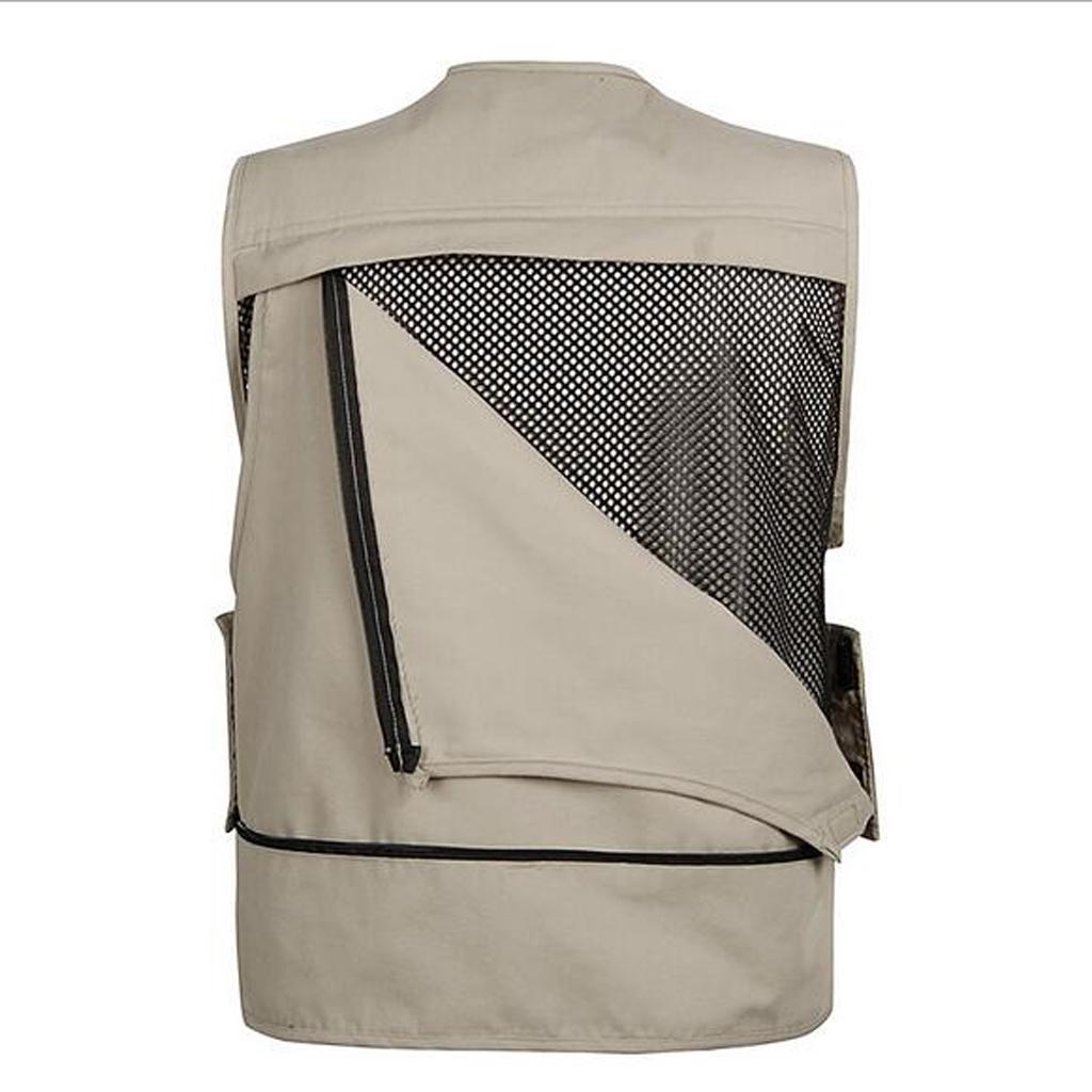 Multi-pocket Meshing Lining Fly Fishing Vest Photographer Jacket Khaki XXL