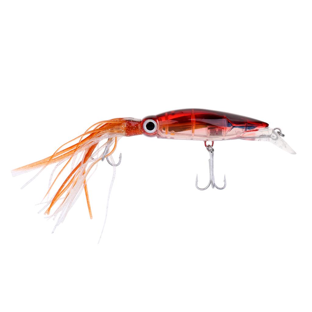 • Semitransparent squid design, very realistic in the water, attract fishes to biting