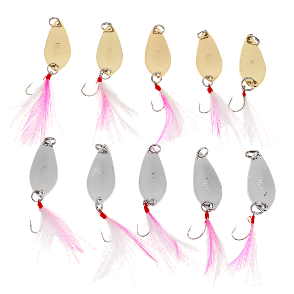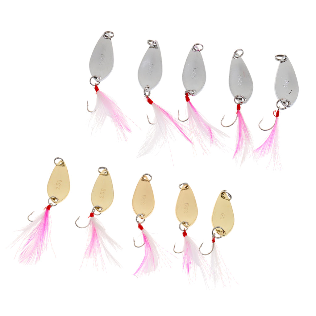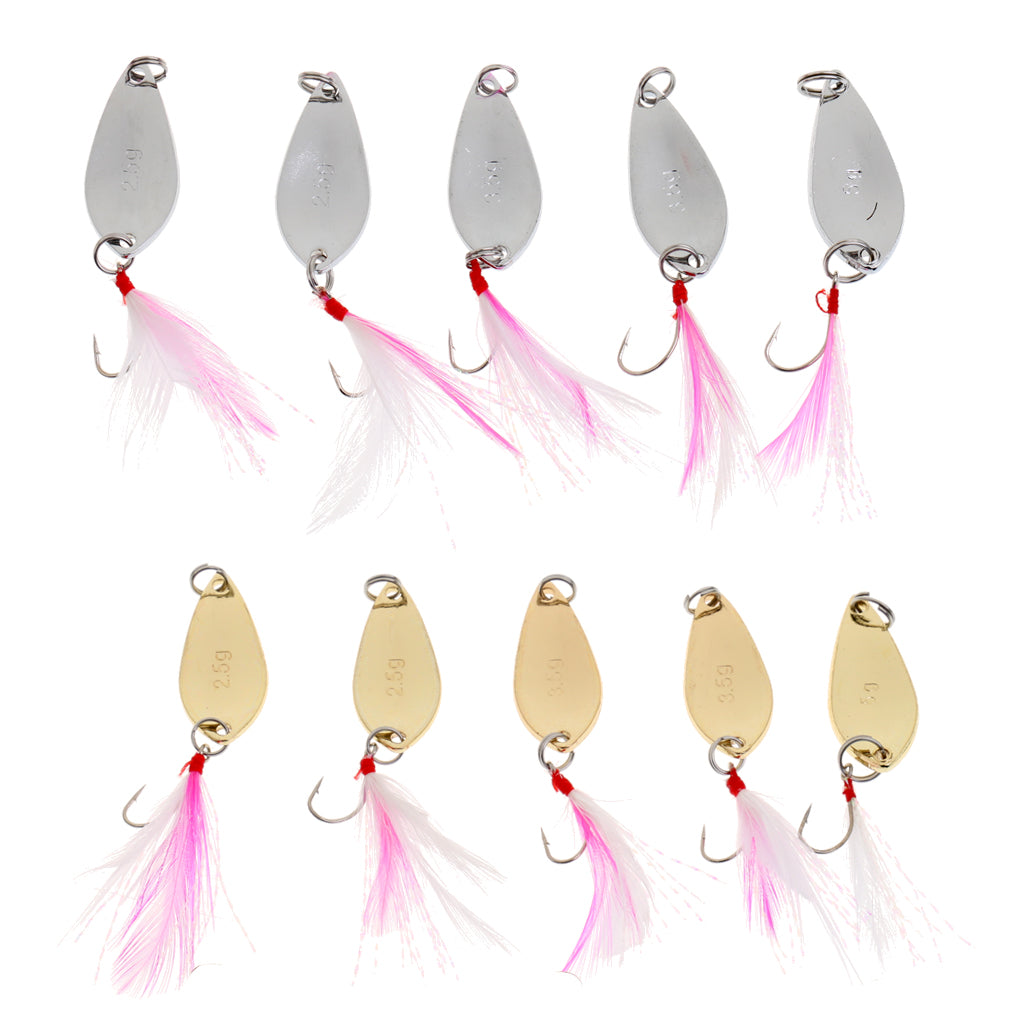 Color: Silver, Golden (2 Pieces of 2.5g baits for each color, 2 Pieces of 3.5g baits for each color, 1 Piece of 5g for each color)