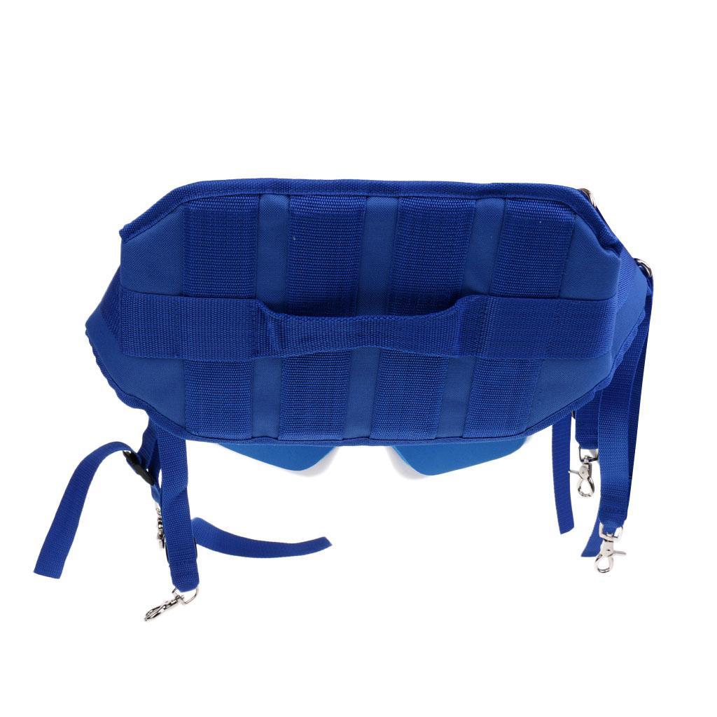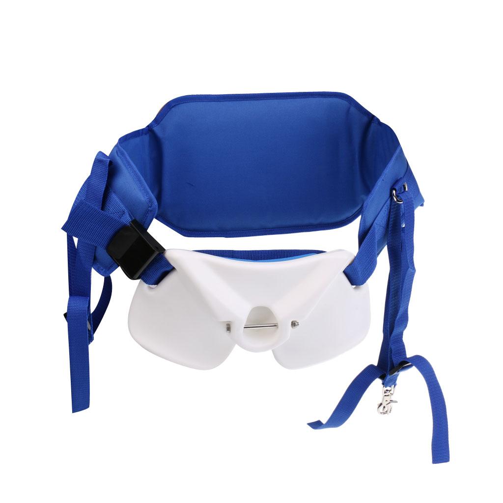 The wide belt harness is adjustable and you could adapt it to the most comfortable position as you like.