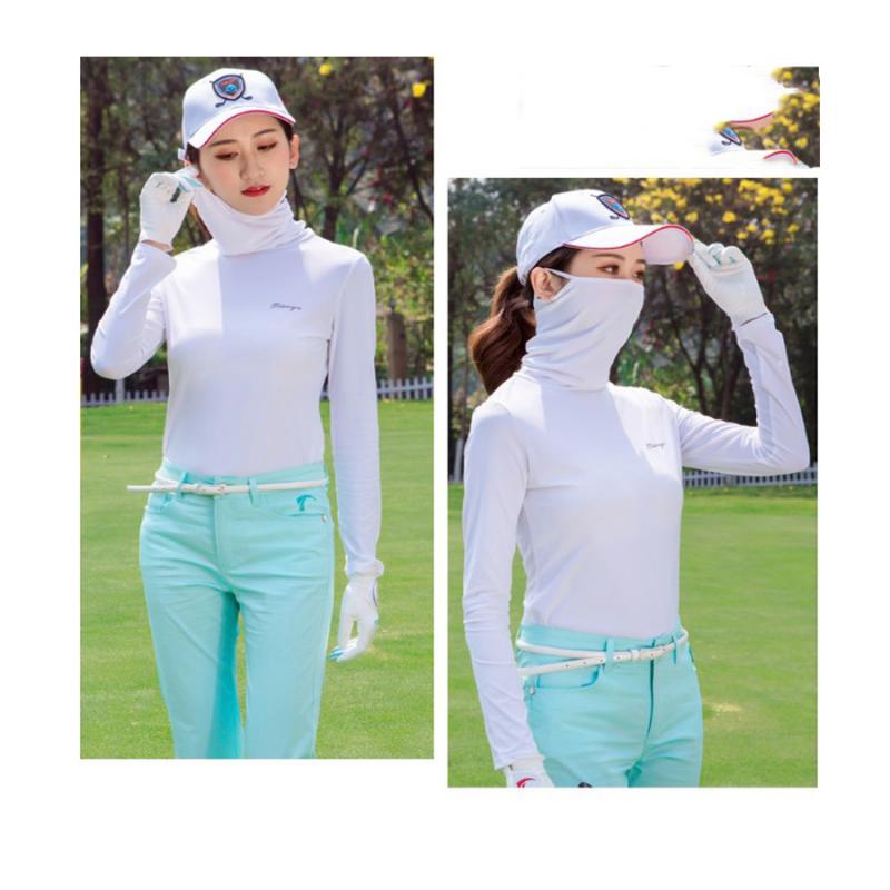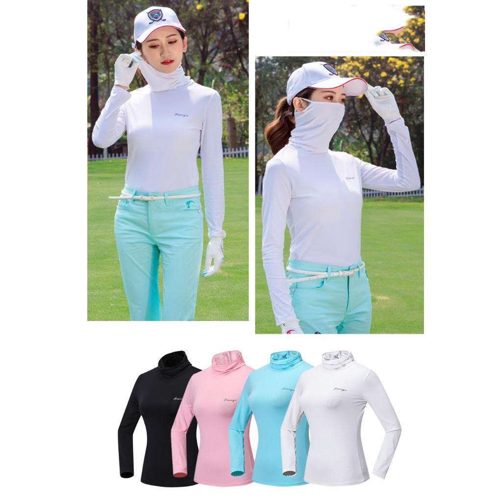 Sun/UV protection ladies Pure color moisture wicking golf T-shirt with long sleeve and mask