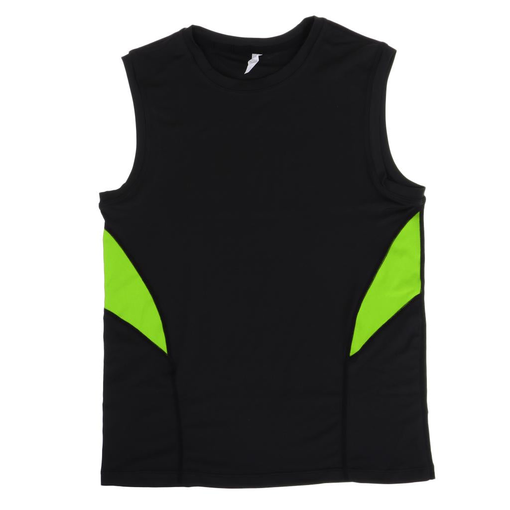 Quick Dry Gym Sleeveess Compression Shirt Sports Top T-shirt Black Green 2XL