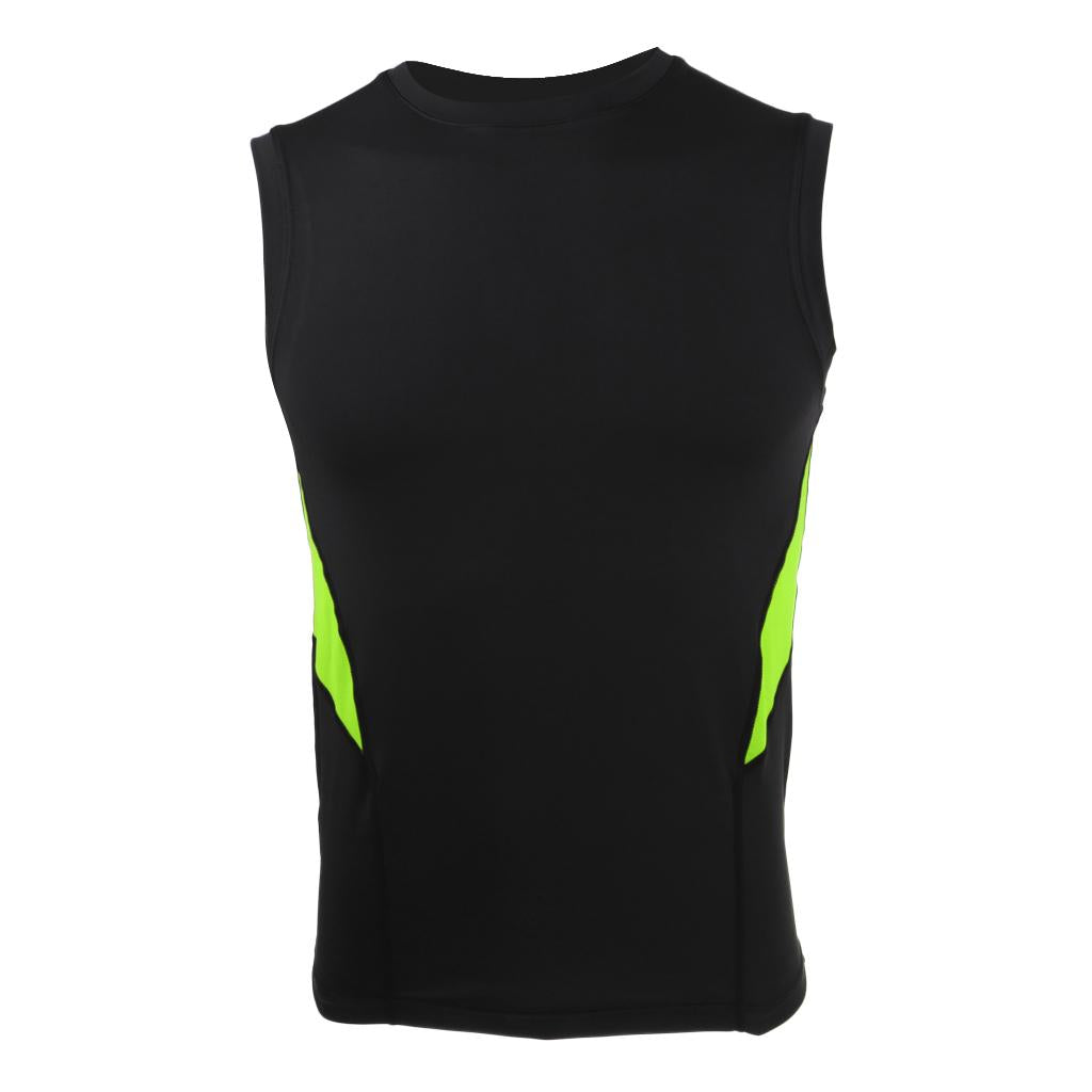 Quick Dry Gym Sleeveess Compression Shirt Sports Top T-shirt Black Green M
