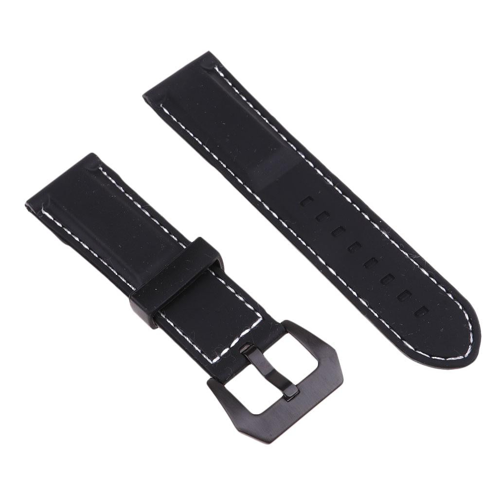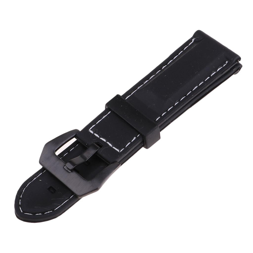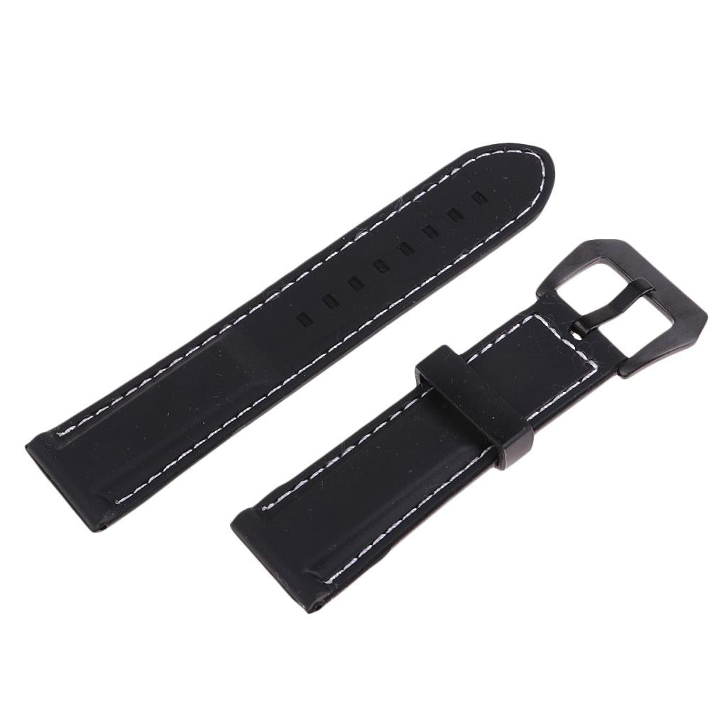 Silicone Universal Sports Watch Band Waterproof Strap 24mm Black Buckle