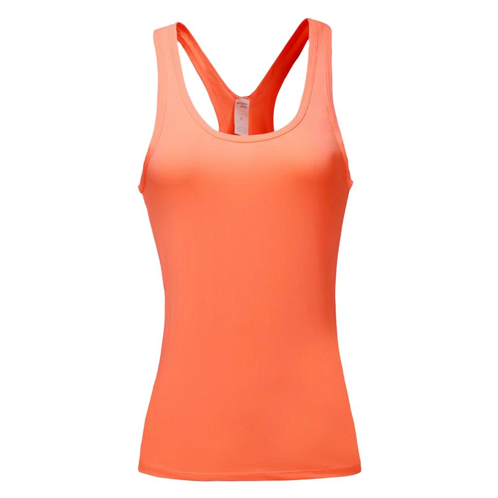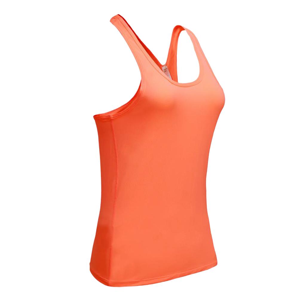 Women Sports Vest Fitness Gym Stretch Sleeveless Shirts orange L