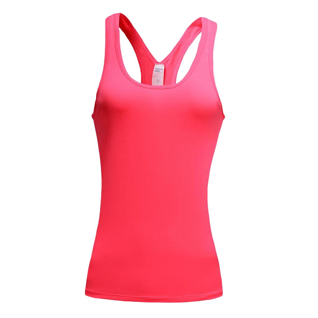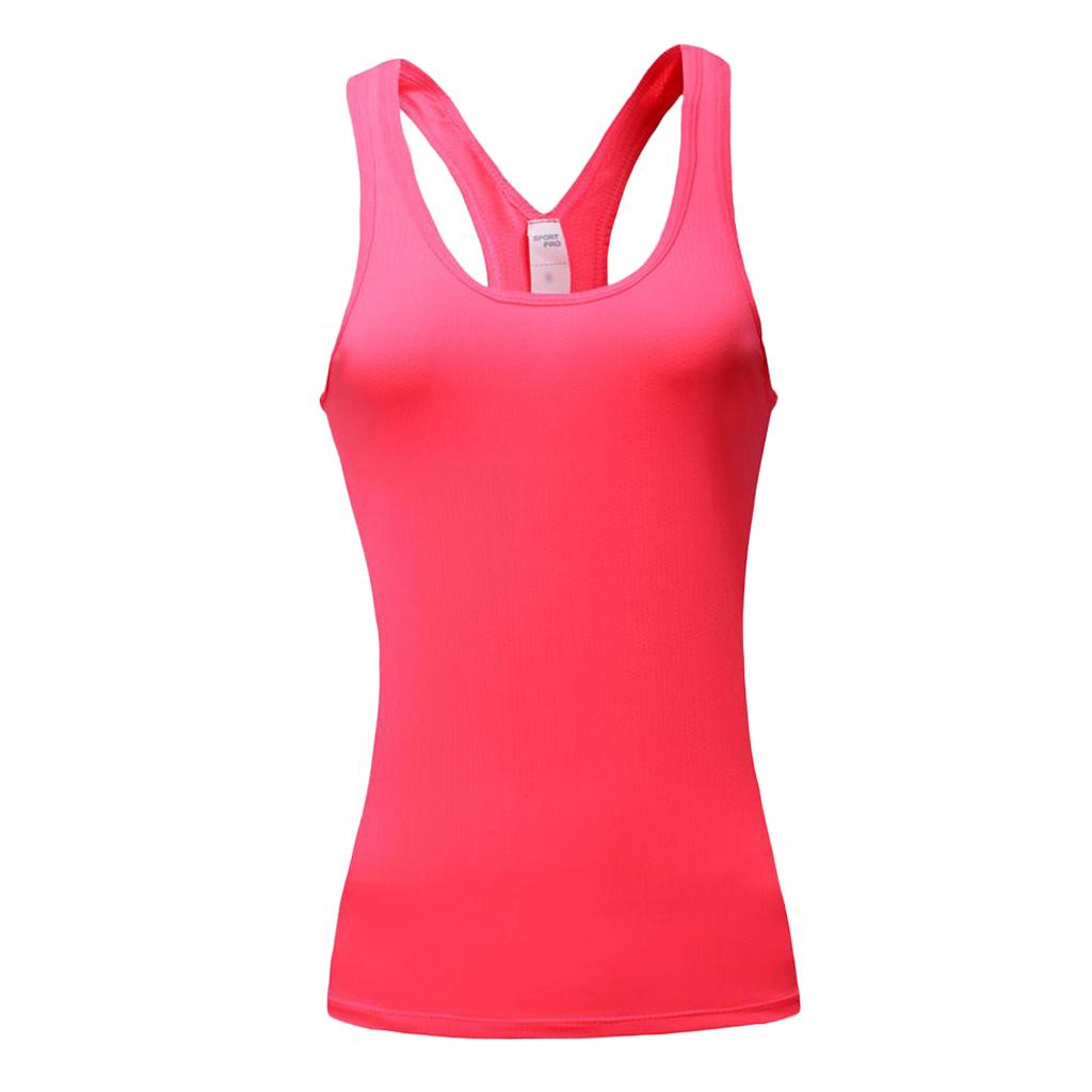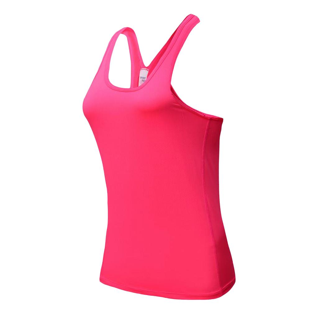 Women Sports Vest Fitness Gym Stretch Sleeveless Shirts Pink L