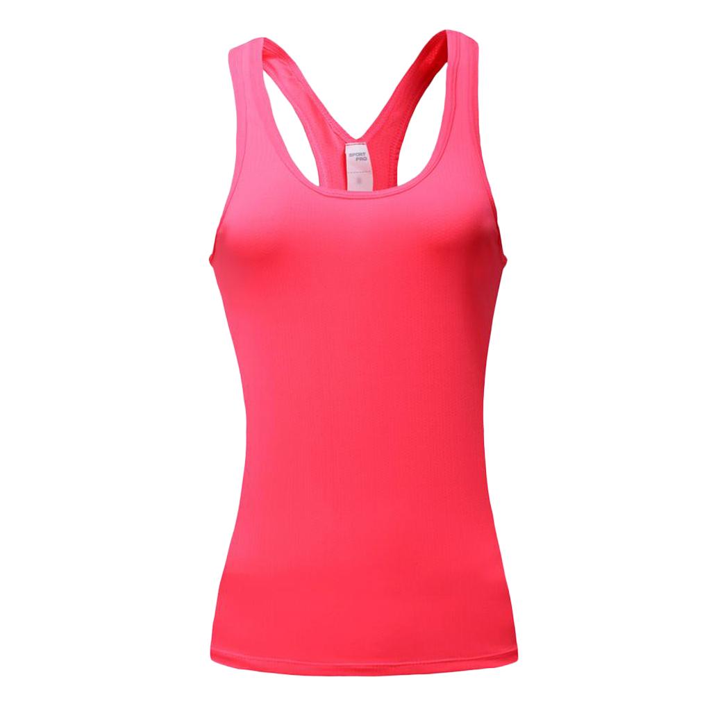 Women Sports Vest Fitness Gym Stretch Sleeveless Shirts Pink M