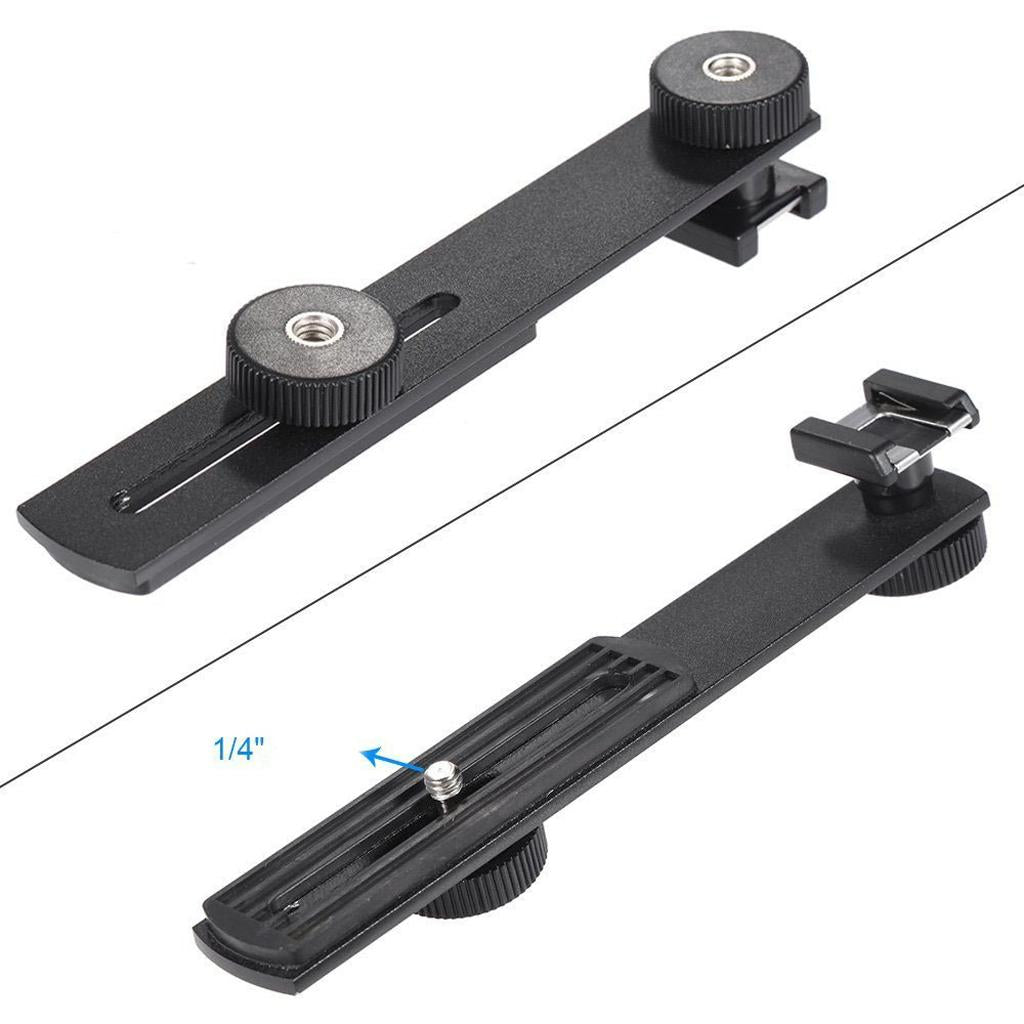 Designed with 1/4” screw hole, and comes with 1 piece of 1/4” adapter screws and 12 piece of hot shoe mount adapter