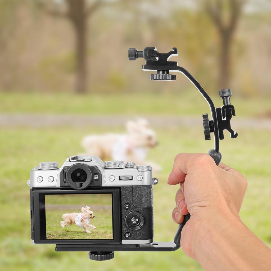 L-shaped Angle 2 Shoe Flash Bracket DV Tray Dual Hot shoe L-shaped Flash Bracket for DSLR Camera Camcorder