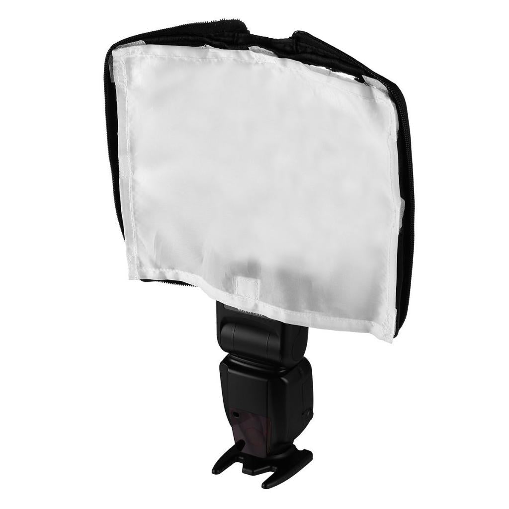 With an elastic strap, compatible with universal flash speedlite , like Nikon, Canon, Sony ,Panasonic ,Pentax, Olympus, Yongnuo, Pixel etc.