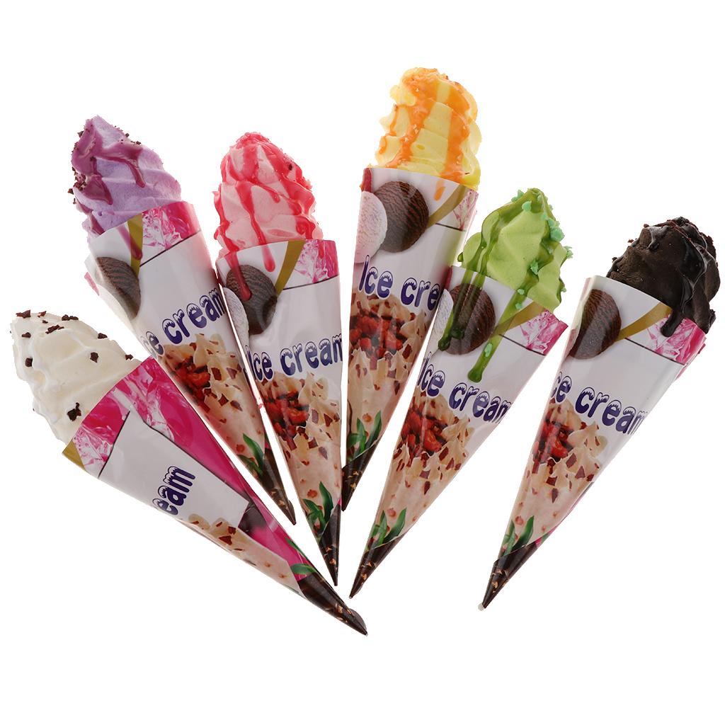 6Pcs Artificial Ice Cream Cone Simulation Realistic Food Dessert