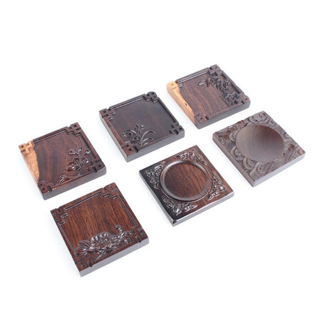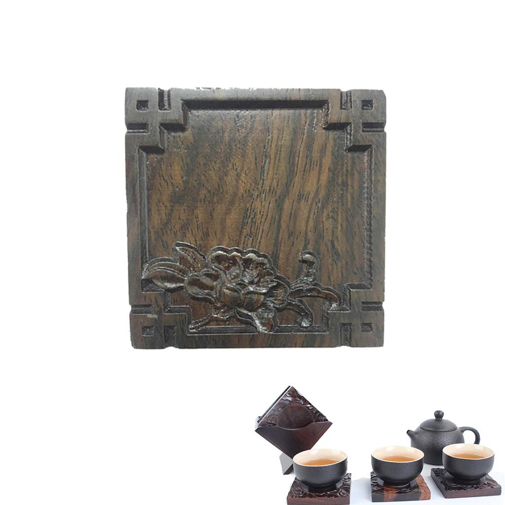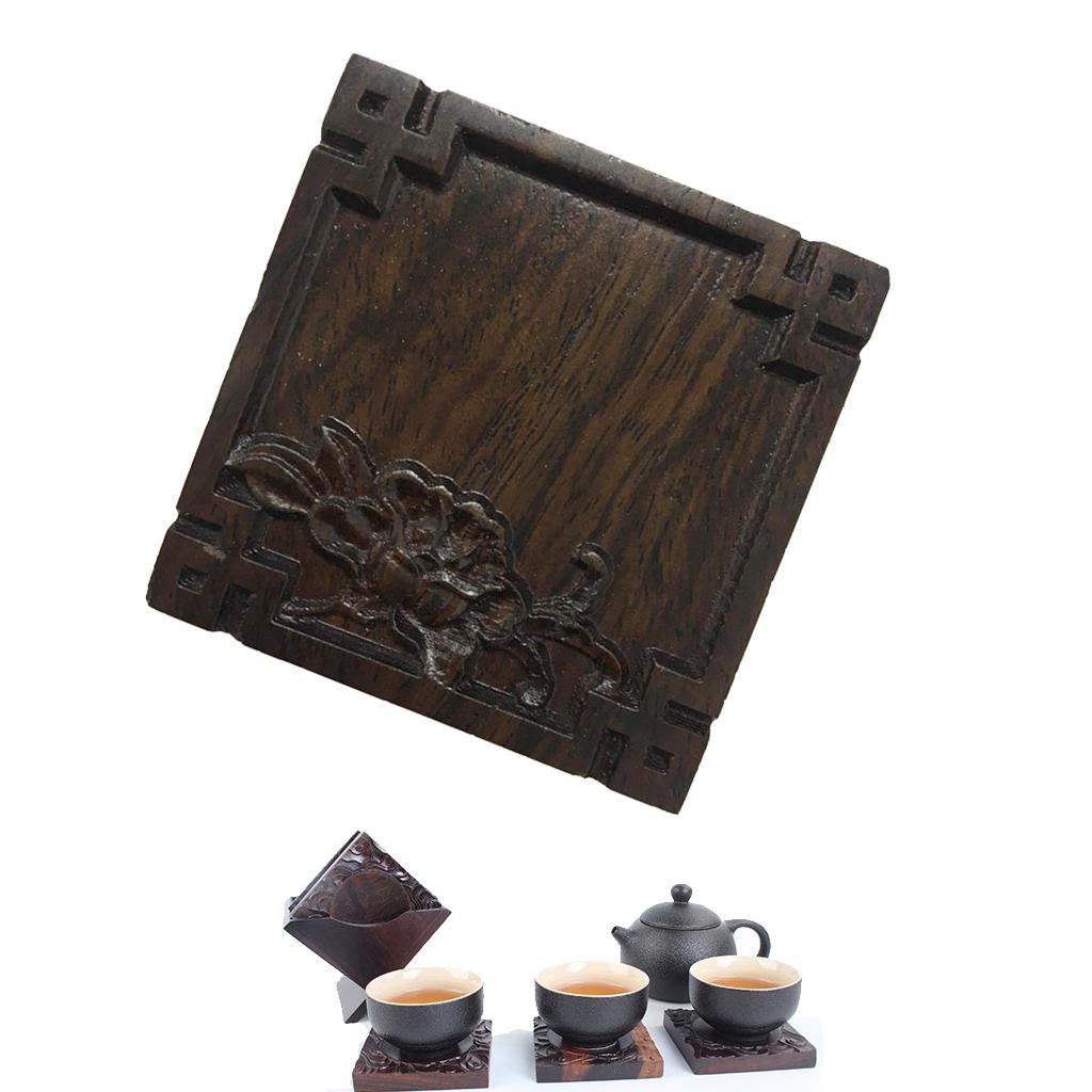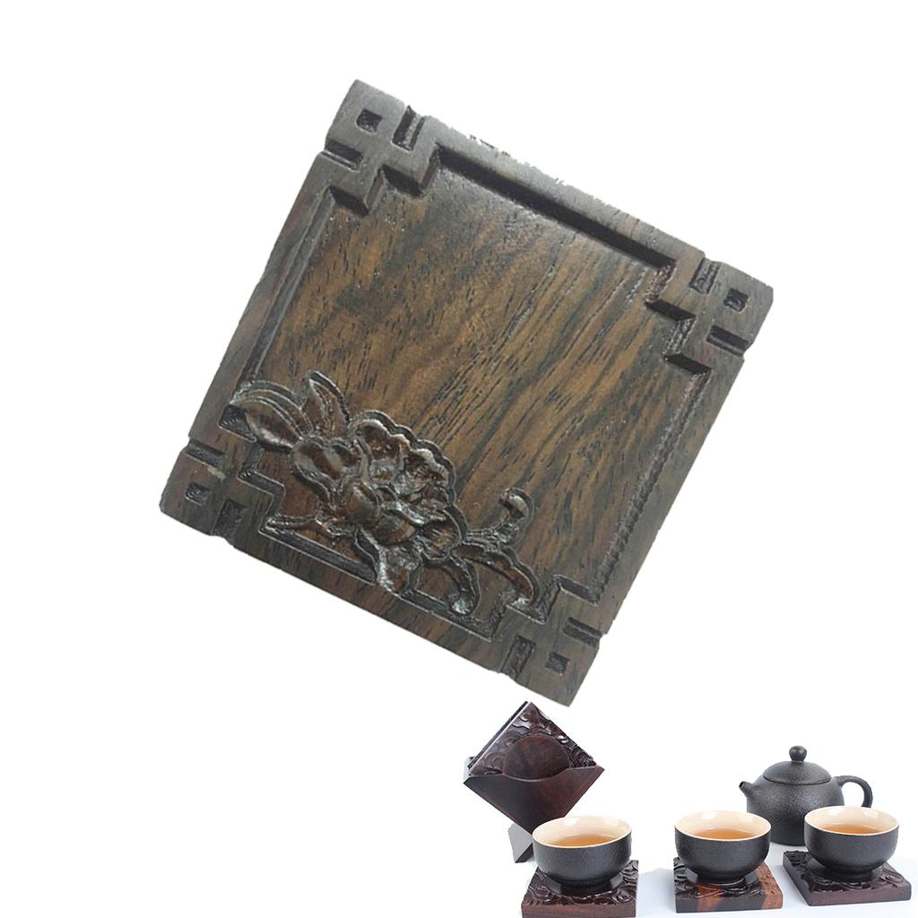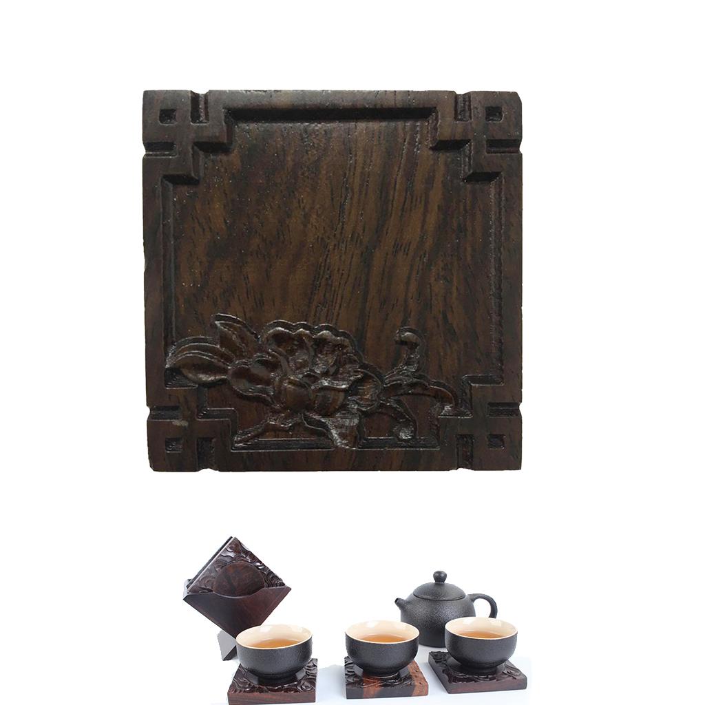 Chinese Ebony Teacup Coaster Mats and Holder for Drinks Chrysanthemum