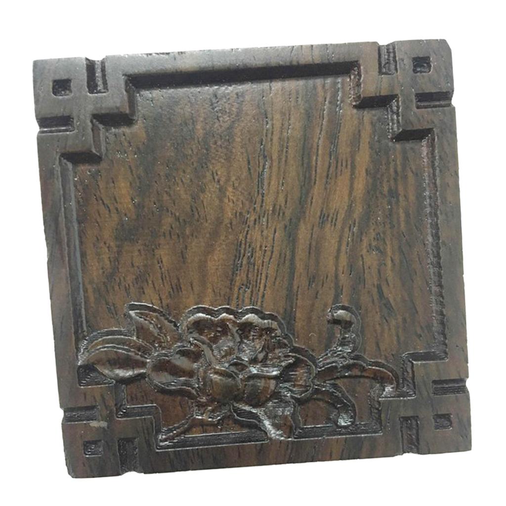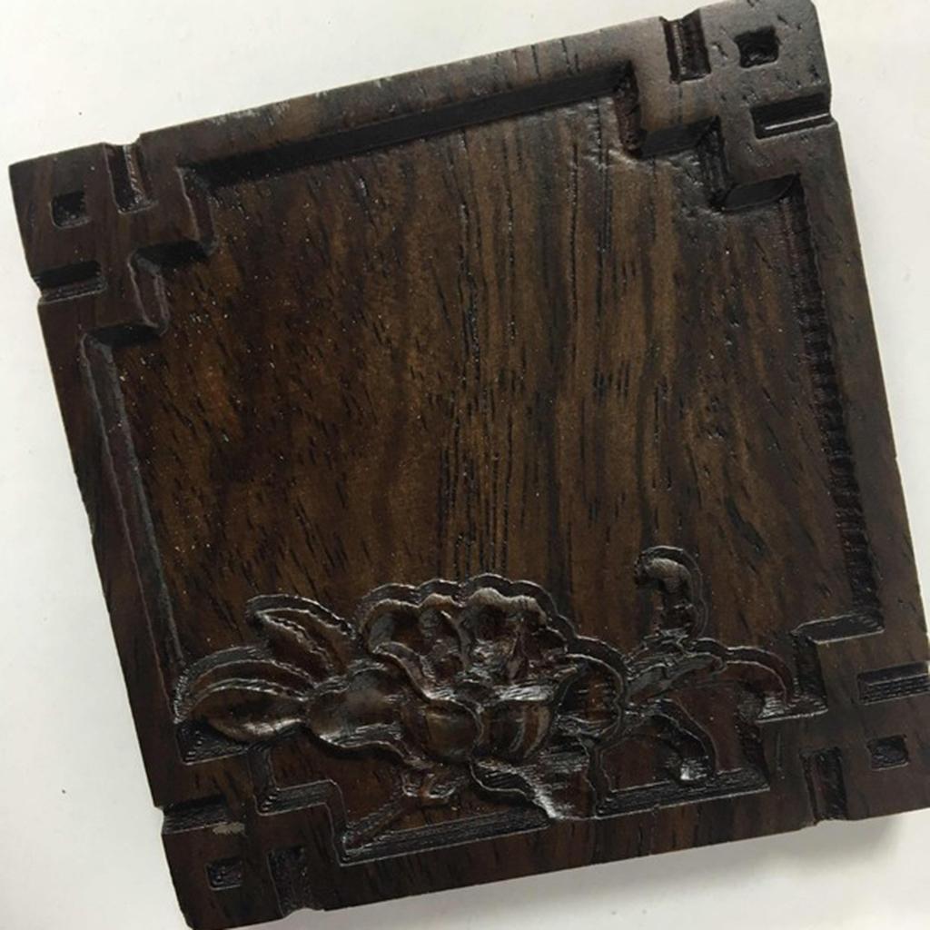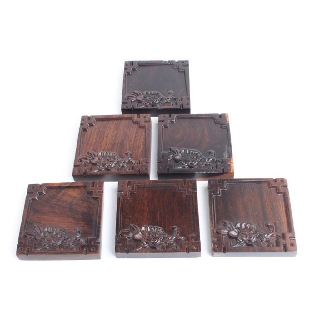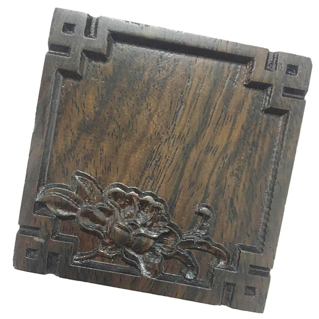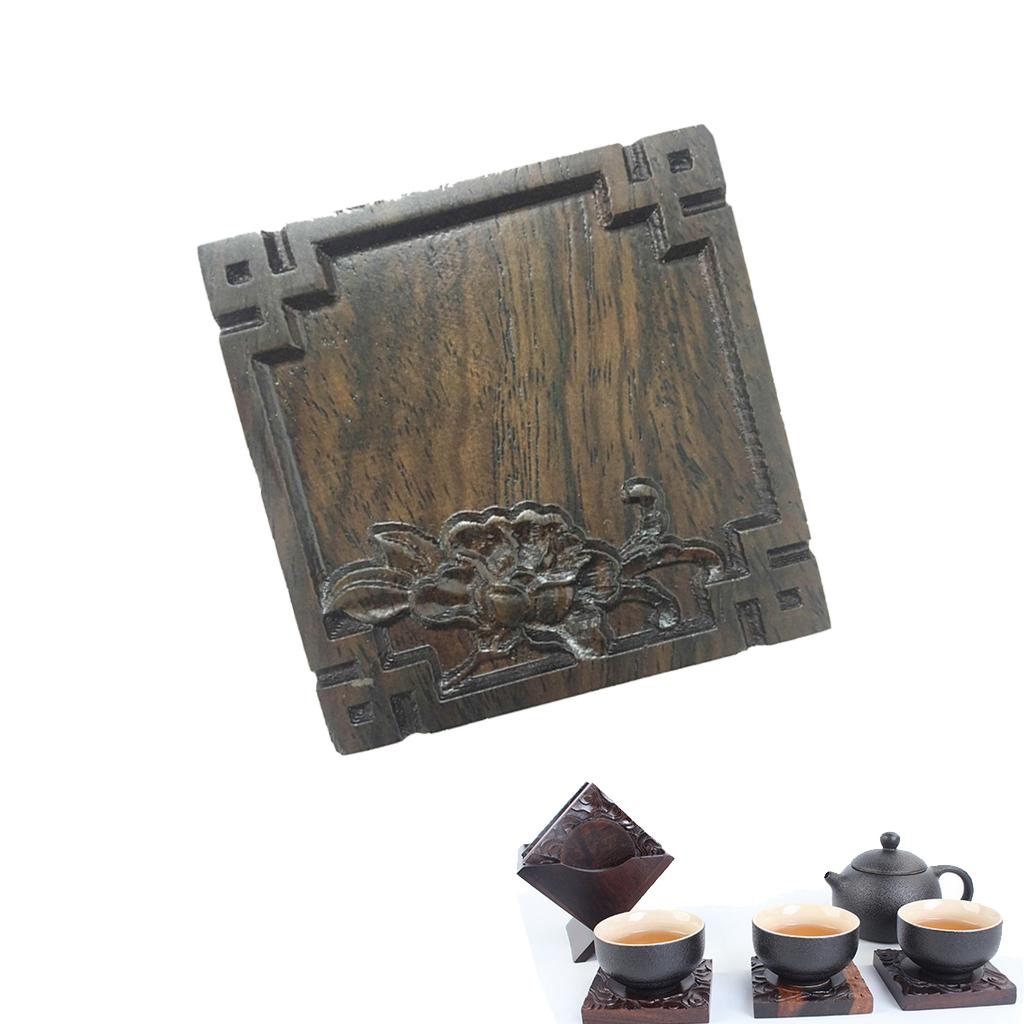 Chinese Ebony Teacup Coaster Mats and Holder for Drinks Chrysanthemum