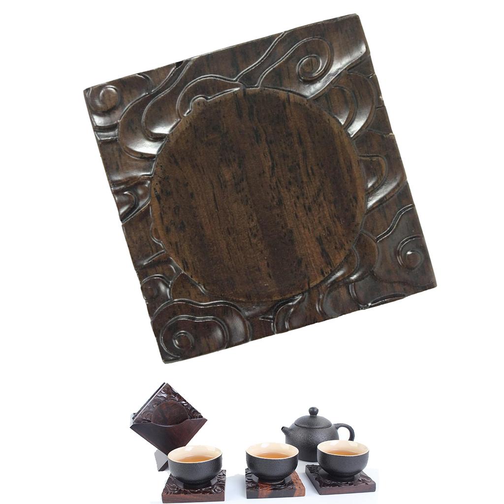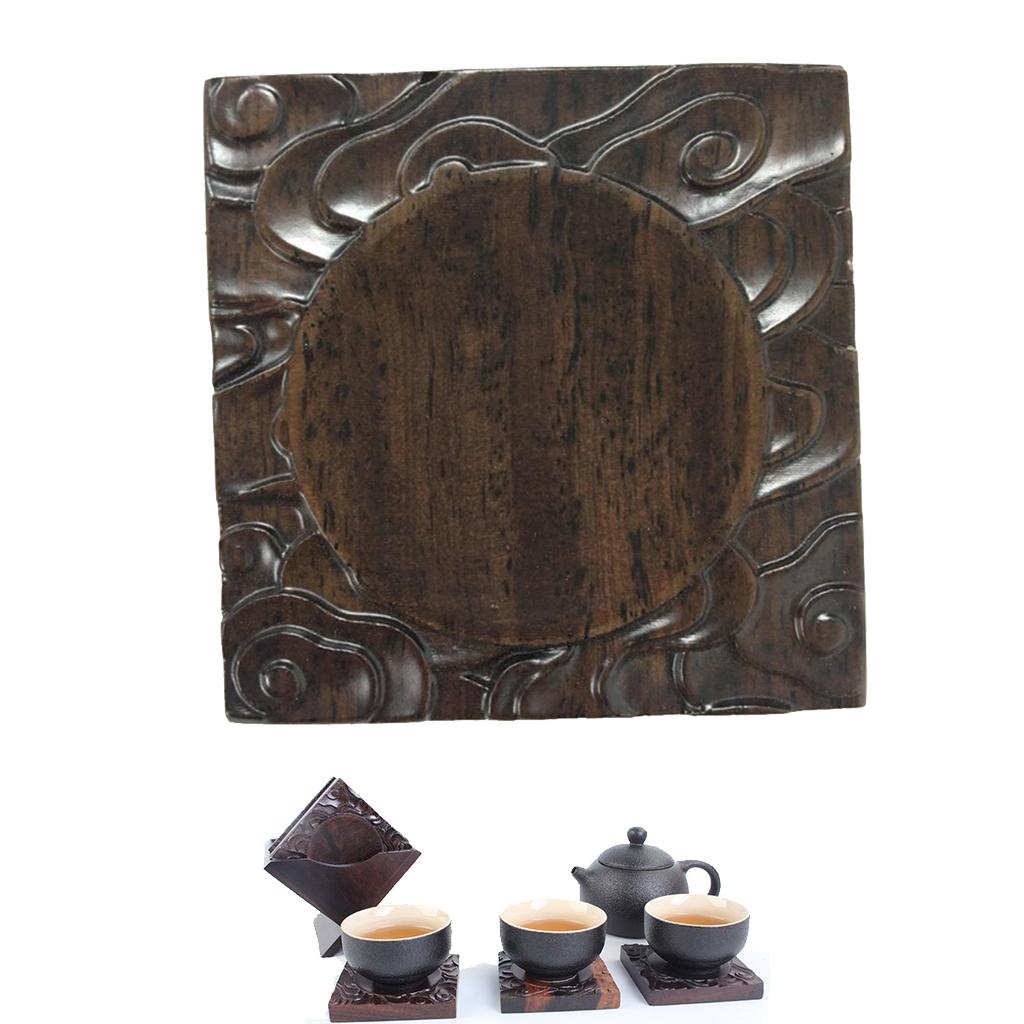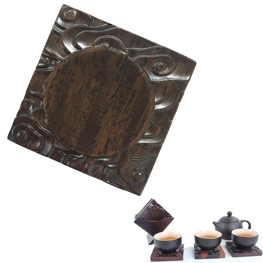 Chinese Ebony Teacup Coaster Mats and Holder for Drinks Clouds